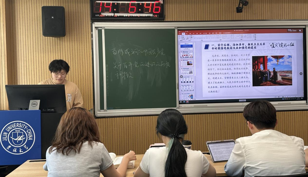 孟威臣同学聚焦新民主主义革命时期,深入剖析党的历次代表大会、八七会议、古田会议等关键节点,以及对土地革命战争时期三次 “左” 倾错误的纠正、遵义会议等重要党建实践。他提到,八七会议确立土地革命与武装斗争方针,指明党建方向;古田会议从思想建党、政治建军入手,奠定党和军队建设根基;遵义会议开始确立以毛泽东同志为主要代表的马克思主义正确路线在党中央的领导地位,扭转危局;延安整风促进全党团结统一。这些实践彰显党的自我革新精神,推动党建成熟,既保障革命胜利,也为新时代党建留下珍贵经验。