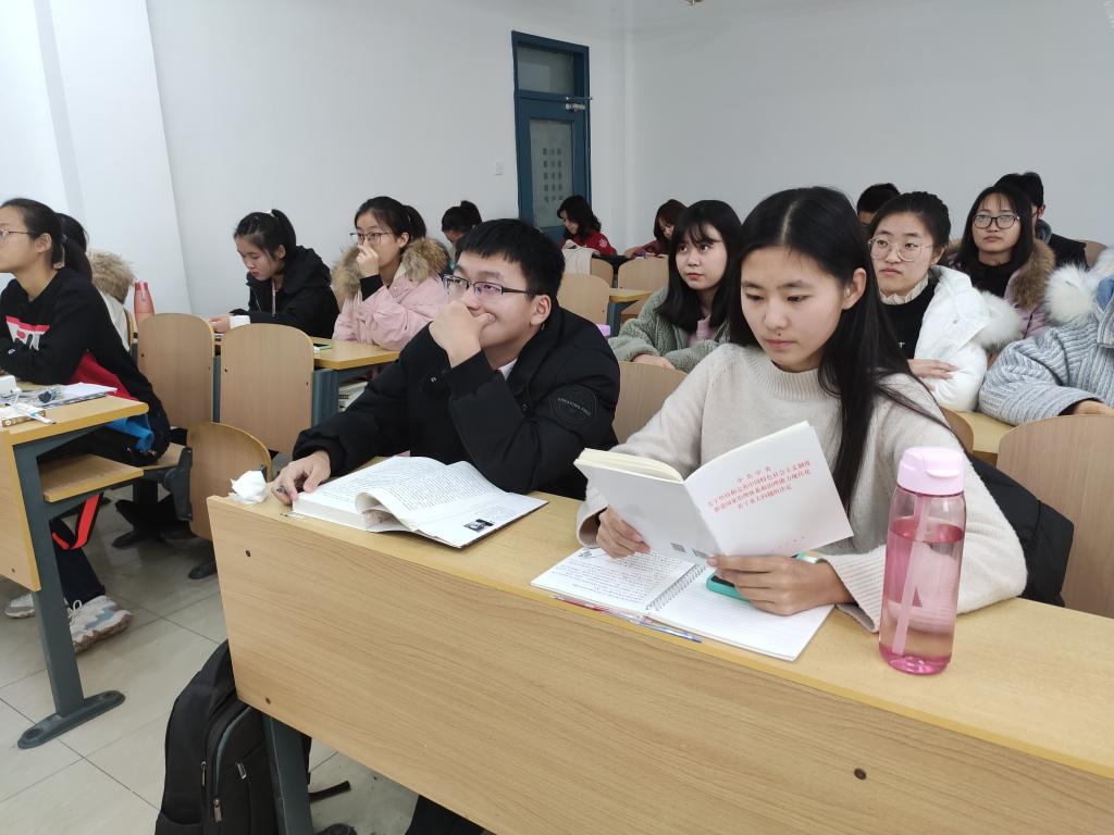 于11月23日召开“学习十九届四中全会精神”主题班会。本次班会由辅导员程思阳指导,班长高畅主持,2018级全体本科生参与了学习。