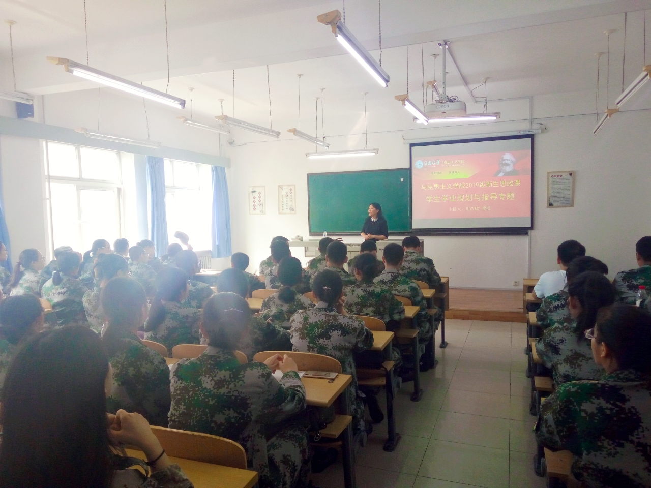 结合迎新工作实际,在军训期间精心筹备和安排了四讲新生主题思政课。9月3日上午,学院副院长邵彦敏教授作为首讲嘉宾,在经信教学楼C205室为思想政治教育专业全体新同学讲授《学生学业规划与指导》专题思政课。2019级全体本科新生认真且细心聆听了本次专题思政课。