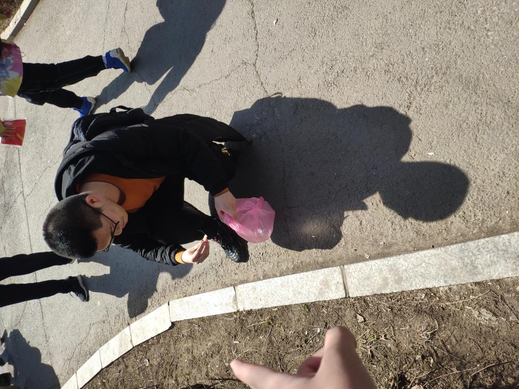 同学捡拾公园垃圾