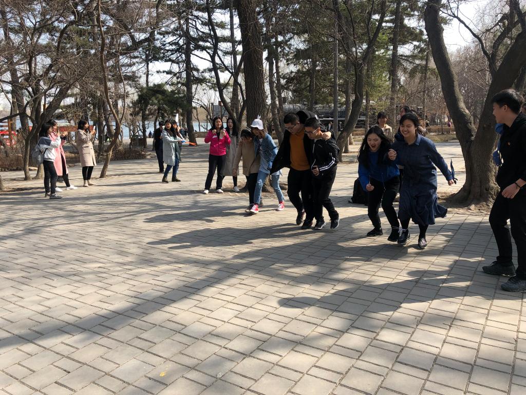 活动开始时,班长为同学们分发环保垃圾回收袋,同学们在参观南湖公园的同时,积极拾起身边周围的垃圾,并进行垃圾分类。过程中,同学们始终不忘拾起身边的垃圾,关心身边的环境,活动起到了良好的教育效果。活动间歇,为增强团队精神和班级凝聚力,同学们组织了一些趣味活动,在“两人三足”项目上,同学们积极参与,展现了马院学子的青春风采和拼搏精神。王勇老师在比赛结束后亲切地对同学们说,要应重视团队合作,在生活和学习中彼此相互配合,才能取得共同进步。