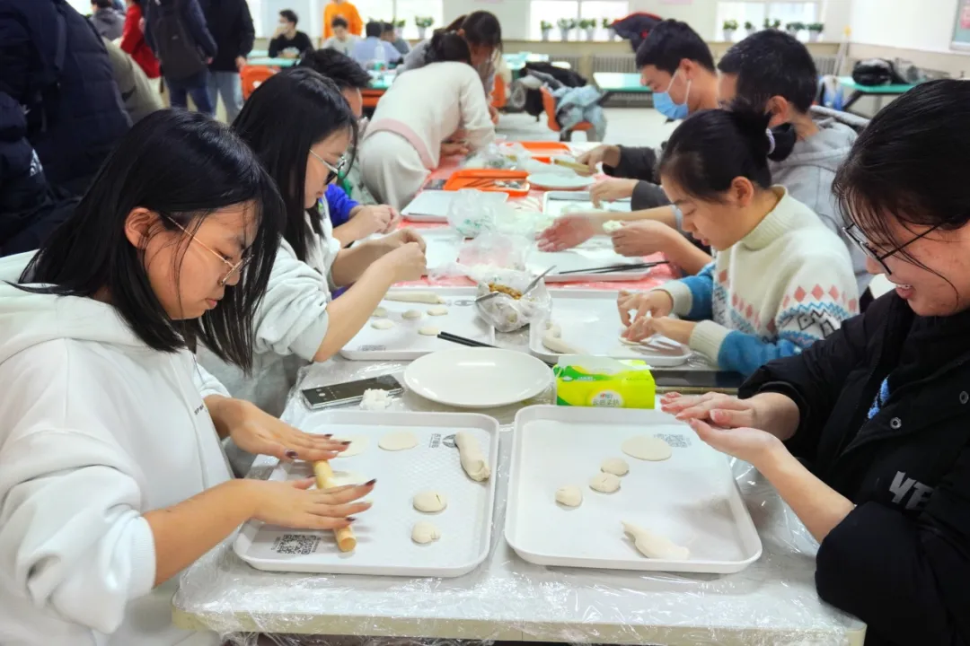 活动还未开始,餐厅工作人员便在后厨早早地忙碌起来,为同学们准备面团和饺子馅。活动现场,同学们欢聚一堂,一起感受那份深厚的文化底蕴和温暖的人间烟火气。大家围在桌边一边包饺子,一边分享生活趣事,互相切磋着手艺,交流着自己包饺子的“独家秘籍”,现场热闹而又温馨。不擅长包饺子的同学也在大家的示范教学下,认真学习包饺子技艺。经过1个多小时的劳动协作,一个个饱含着幸福和温暖的饺子整齐地排列在餐桌上。同学们把包好的饺子送到餐厅后厨烹饪,待煮好的饺子端至大厅,浓郁的饺香顷刻四溢。同学们津津有味地享受着自己的劳动成果,美味流窜于唇间,温暖环绕于心中。