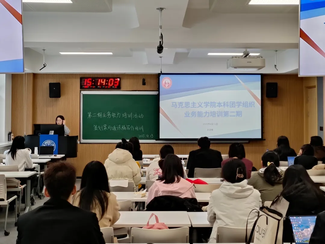 本科团委秘书部在学生工作办公室的指导下于2025年4月13日举办了第二期业务能力培训——策划案与通讯稿写作培训活动。本科团委秘书部负责人王语嫣担任本次培训主讲人。