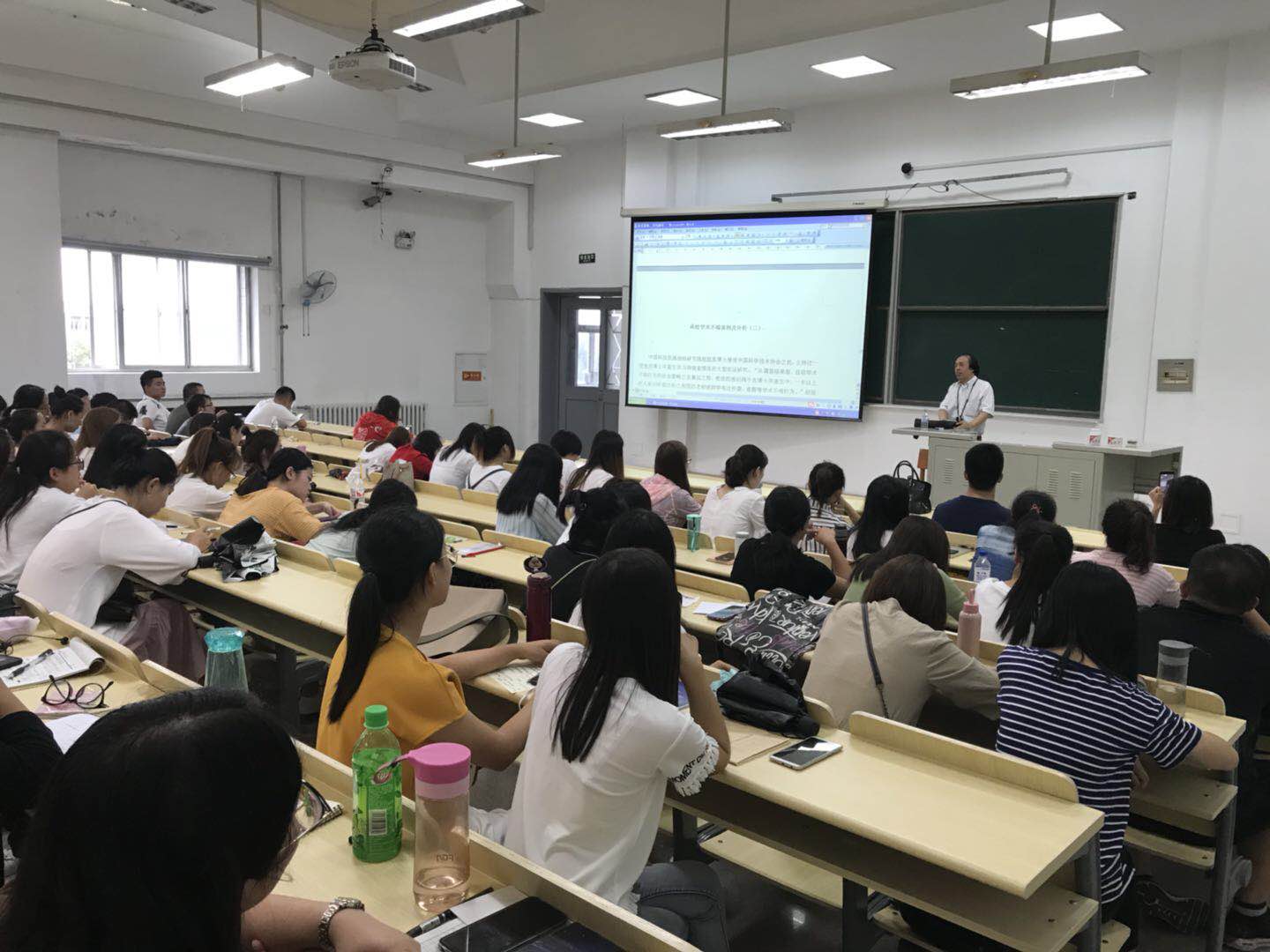 博士生导师贾中海教授在中心校区逸夫楼16阶为新生做科学道德和学科规范讲座。