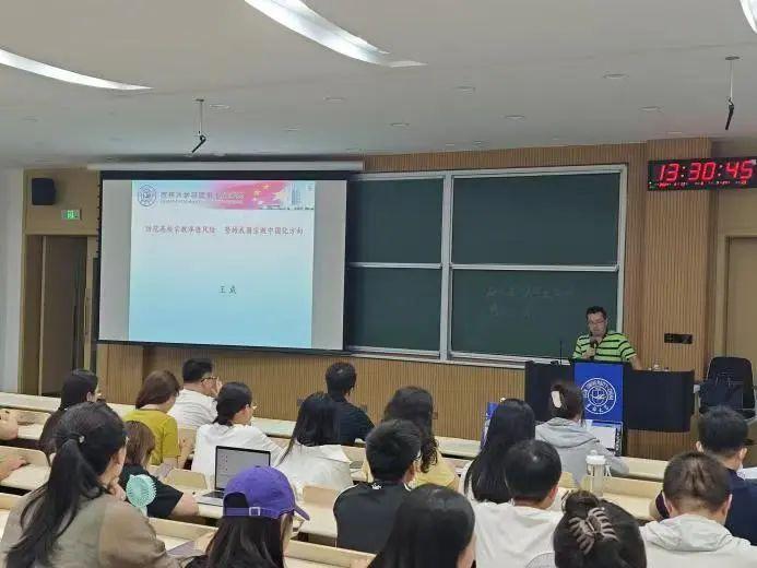 临近尾声,王成老师围绕习近平总书记在全国宗教工作会议上首次提出的“我国宗教的中国化方向”问题,鼓励同学们深入学习我国的宗教政策和法律法规,达成统一的思想共识,同时要明确问题意识,以马克思主义宗教观武装头脑。此次专题讲座学理内容深厚、逻辑脉络清晰、现场氛围十分活跃,不仅增强了同学们对马克思主义宗教观的全面理解,也激励同学们坚定共产主义理想信念,树立正确的世界观、人生观、价值观,脚踏实地、学以致用,努力担当起共产主义事业接班人的历史重任。