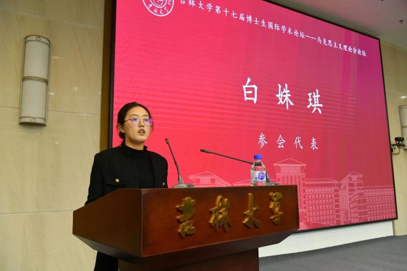 2024级博士研究生白姝琪分享了自己的心得体会。她认为马克思主义不是书袋里的学问,本次论坛为灵魂和理念的碰撞与交流搭建起平台,当代青年学者要读懂中国、拥抱世界,把论文写在祖国大地上,以实际行动践行马克思主义理论的真理底色。
