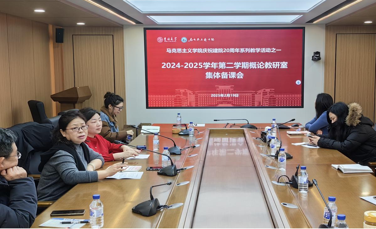 召开了“毛泽东思想和中国特色社会主义理论体系概论”课程集体备课会。会议由概论教研室主任王颖教授主持,副院长董树彬教授、李静教授参加了会议。会议围绕将党的最新理论融入概论课教学、更好地实现立德树人、凝心聚魂的教学目标进行了充分的讨论交流,进一步明确教学要求和教学规范,提升了教师对教学内容、教学方式方法的认识。