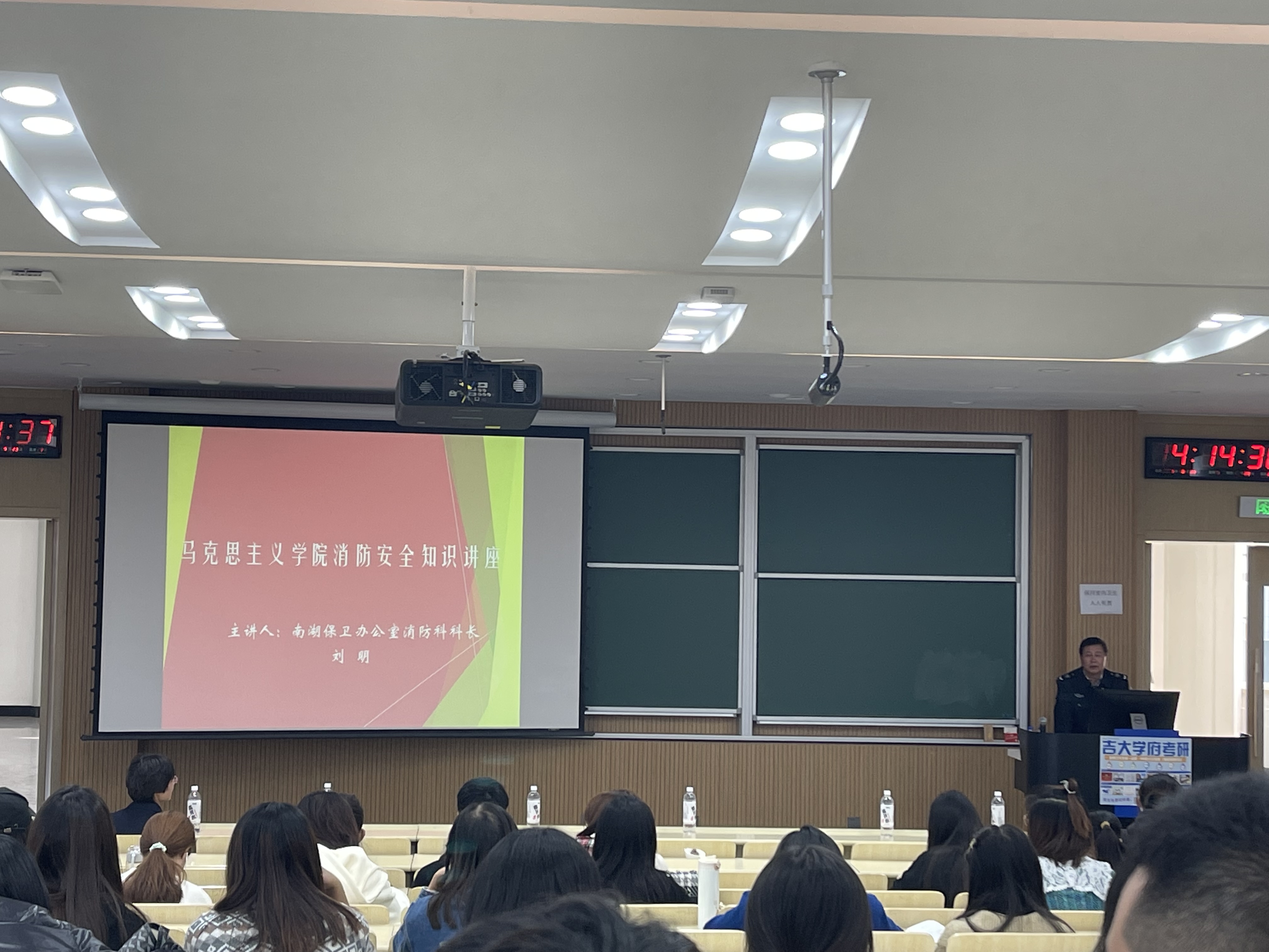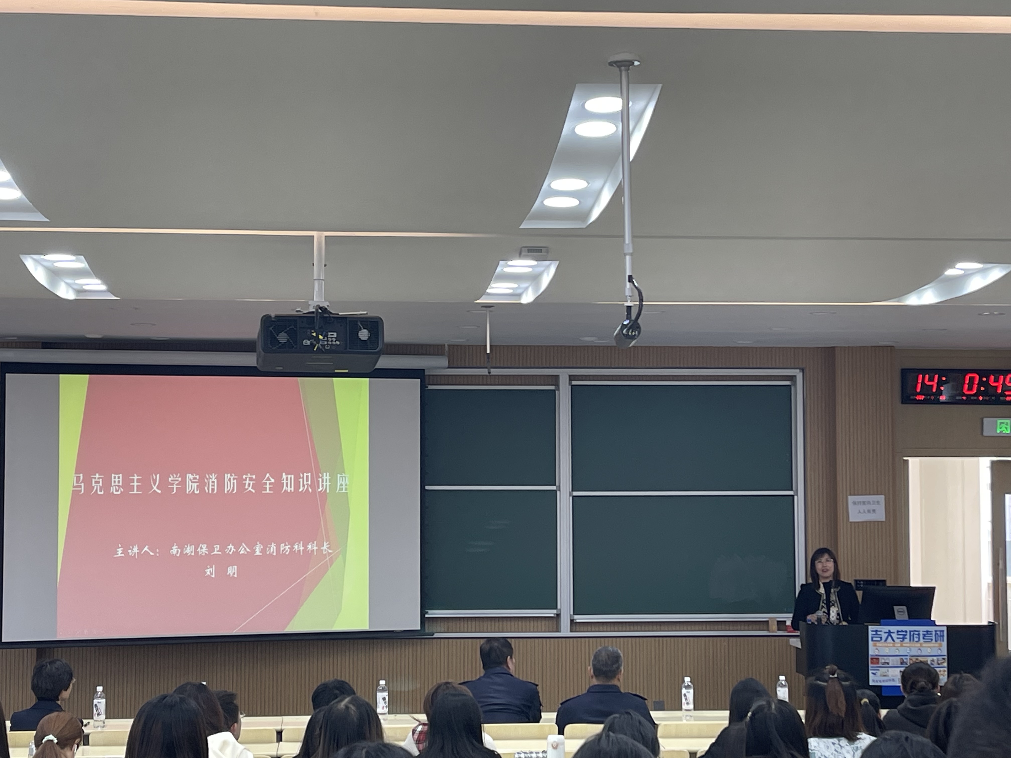 邀请南湖校区保卫办公室消防科科长刘明为2021级新生做了消防安全知识讲座,并指导学生进行了灭火演练。学院党委副书记、纪委书记崔妍,行政副院长姜鑫出席本次活动。讲座由院团委书记万佳悦主持,180余名研究生聆听讲座并参加了灭火演练。