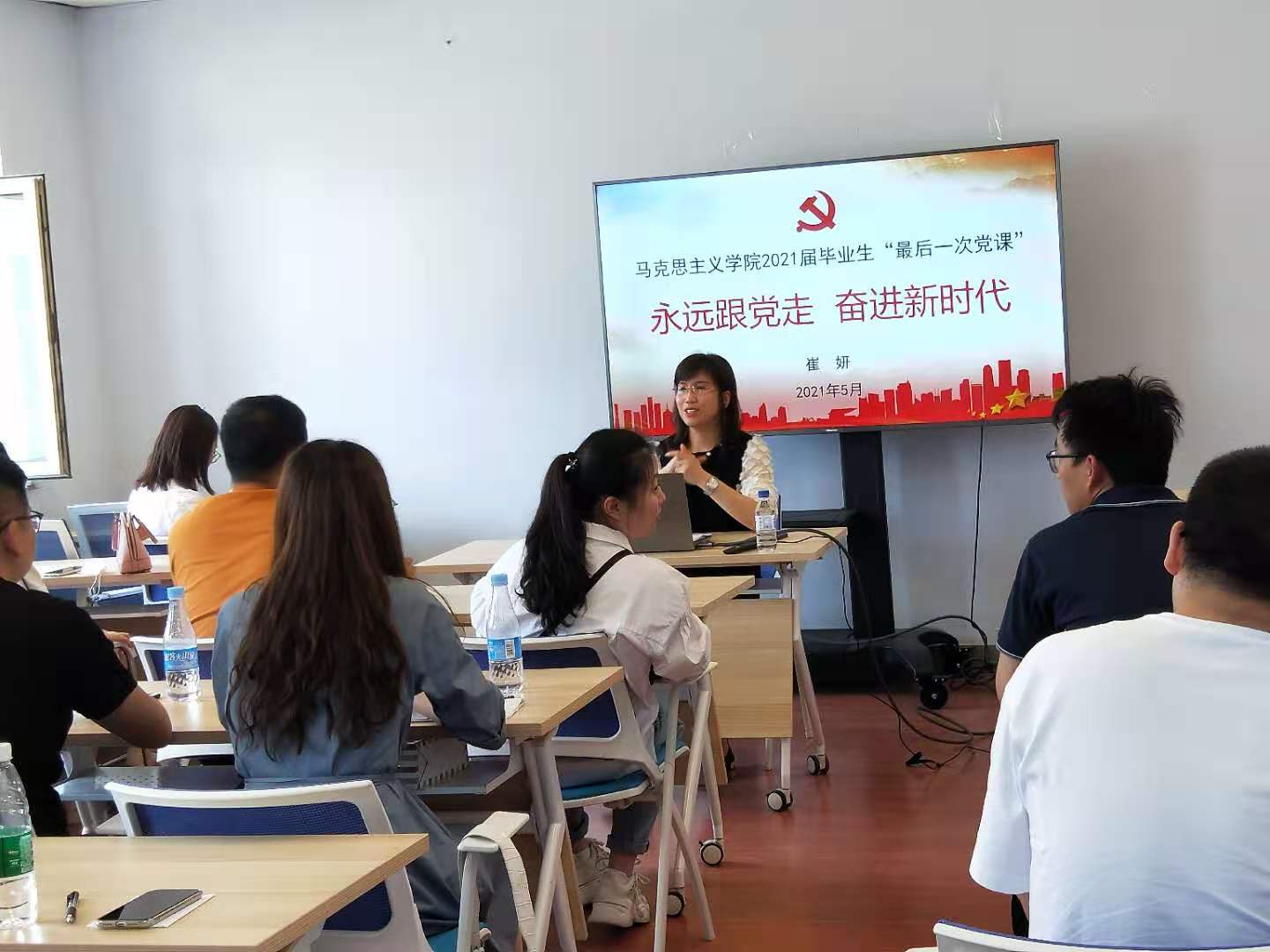主楼四楼404教室组织开展以“永远跟党走、奋斗新时代”为主题的毕业生党课,会议由学院团委书记万佳悦主持,麻豆视频