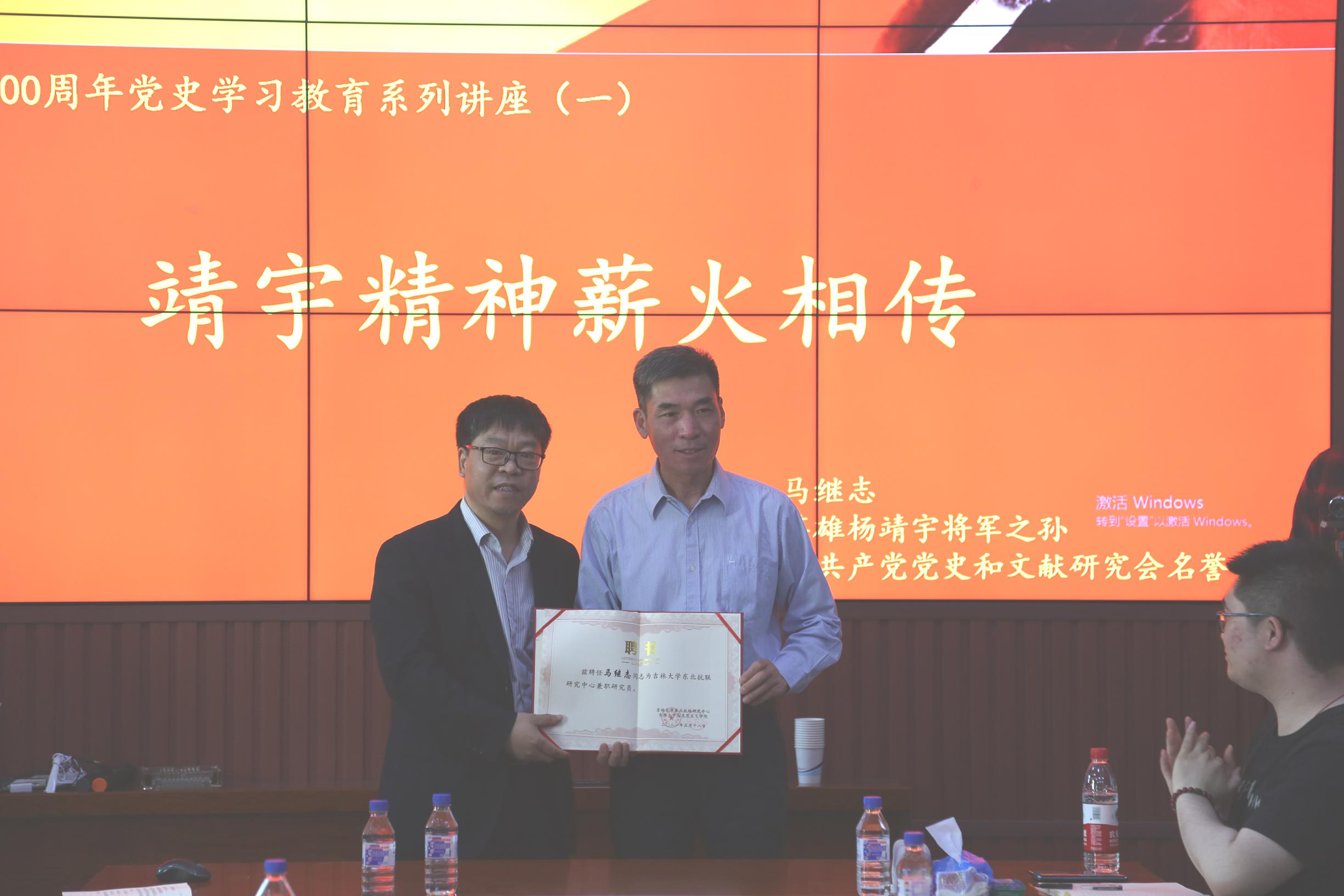 ,为马克思主学院师生做了一场题为“靖宇精神 薪火相传”的党史学习教育报告。