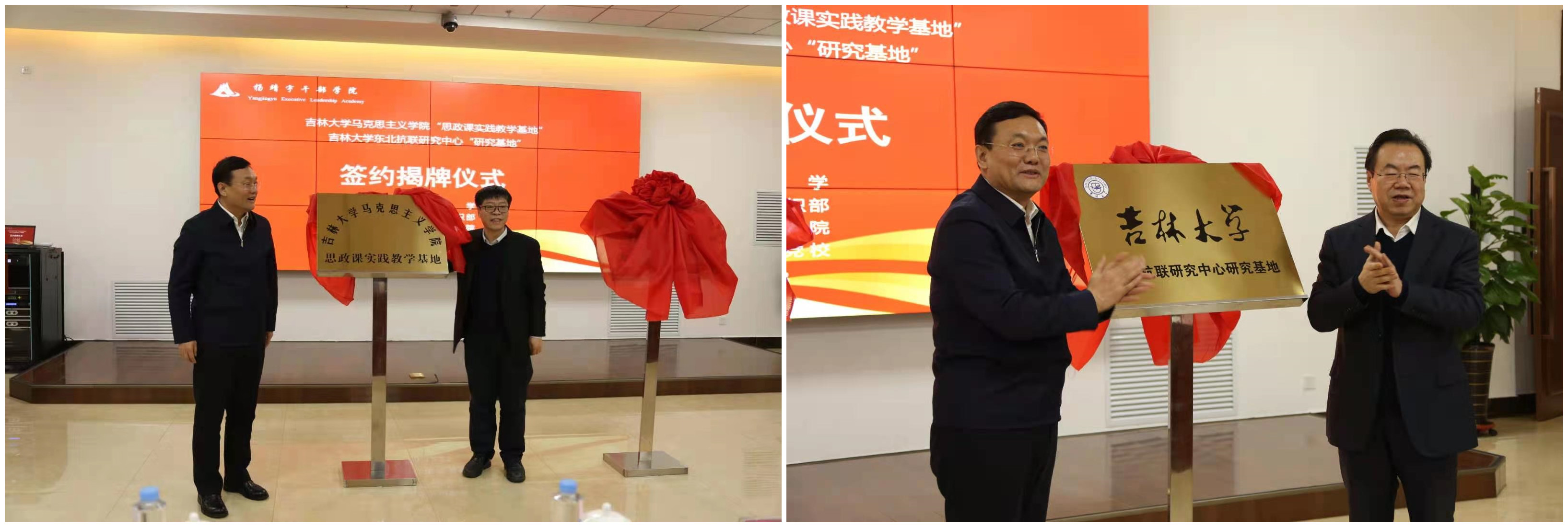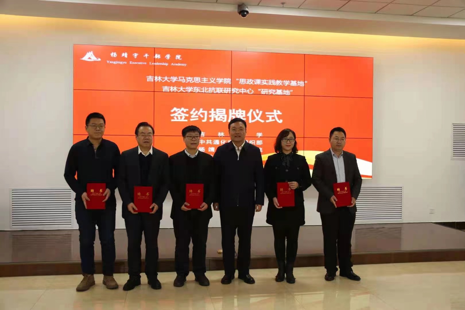 院长吴宏政教授、东北抗联研究中心主任刘信君教授分别与通化市委党校常务副校长陈宝金签署了《共建思政课实践教学基地合作协议书》、《共建东北抗联研究基地合作协议书》,并举行了签约揭牌仪式,通化市委常委、组织部长邵波、通化市委党校副校长李朋达等参加了签约揭牌仪式。签约揭牌仪式由通化市委党校副校长孙春波主持。