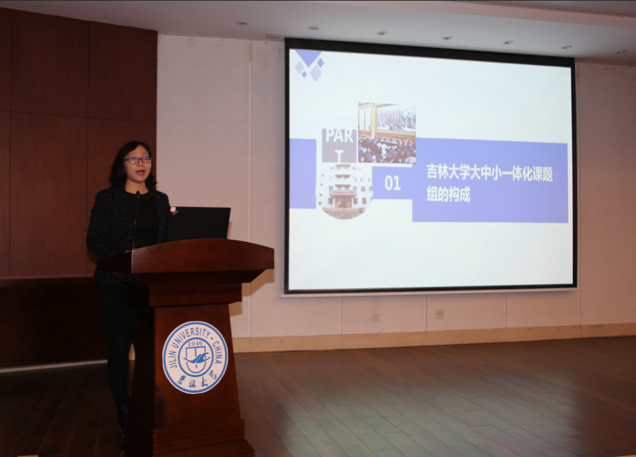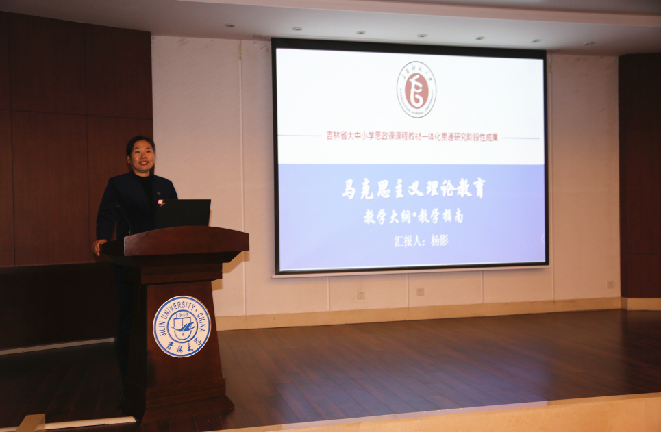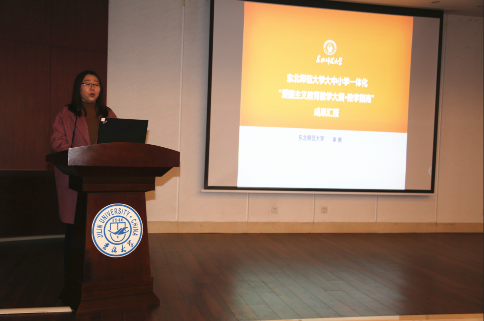 长春中医药大学课题组针对“中华优秀传统文化教育课程一体化建设”进行了成果汇报。她指明《大纲和指南》编写的前提依据是思想政治教育规律和学生认知发展规律;强调《大纲和指南》编写注重的两个主要原则以及主要思路。