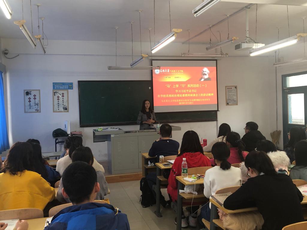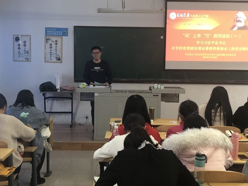 组织2018级全体本科生于3月22日下午举行“学习习近平总书记在学校思想政治教育理论课教师座谈会上的讲话精神”学习讨论会,习近平总书记的讲话,同学们受到了极大的振奋和鼓舞,积极参与、踊跃发言、感触良多。辅导员程思阳组织并主持了学习讨论会。