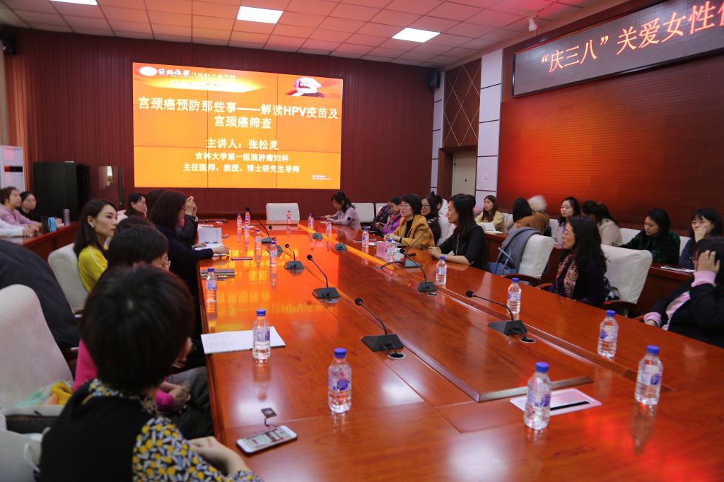 妇委会举办“庆三八”关爱女性健康知识讲座,向全院女教职工和女大学生普及宫颈癌防治知识。讲座特邀我校第一临床医院肿瘤妇科主任医师张松灵教授主讲,讲座题目:宫颈癌预防那些事——解读HPV疫苗及宫颈癌筛查,60余人聆听了讲座。