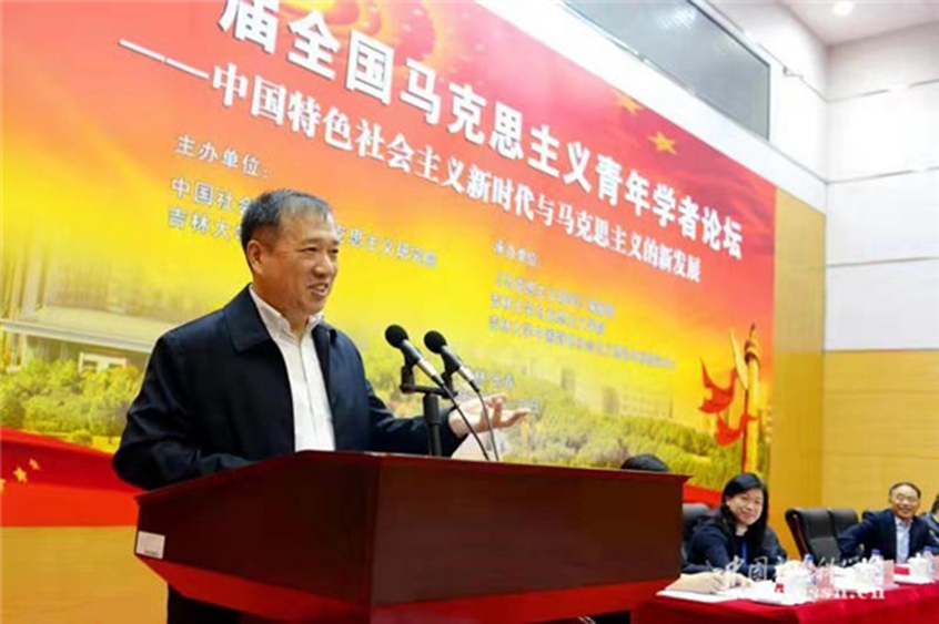 给予本届论坛的支持表示感谢,并阐述了举办马克思主义青年学者论坛的意义和作用。他表示,事实证明举办全国马克思主义青年学者论坛是正确的,对深化马克思主义研究、提高从事马克思主义教师的教学水平、坚定马克思主义信仰有着积极的作用。邓纯东结合我国当今时代特征和对马克思主义研究的情况,希望马克思主义研究者要继续追求正确的目标。他提出,一是论坛作为促进学者之间相互学习交流的平台,要加强、加深对习近平新时代中国特色社会主义思想的学习交流,把学习推向深入。准确把握习近平新时代中国特色社会主义思想的内容和含义,准确理解,准确宣传;二是论坛要正确认识和总结我国改革开放40年的经验,要关注和重视总结改革开放经验这一重要问题,即我们的改革就是坚持了社会主义的方向和原则;三是论坛要为对继续加强党的意识形态工作、巩固马克思主义指导地位作出努力作出努力。防止马克思主义在论坛上“失声”;四是希望论坛积极落实习近平总书记提出的“深化马克思主义理论研究和建设,加快构建中国特色哲学社会科学”,在研究和教学中要坚持以马克思主义为灵魂,体现马克思主义的立场、观点和方法,为建设有中国特色、中国风格、中国气派、中国味道的社会主义哲学科学学科哲学社会科学,做出我们应有的贡献。