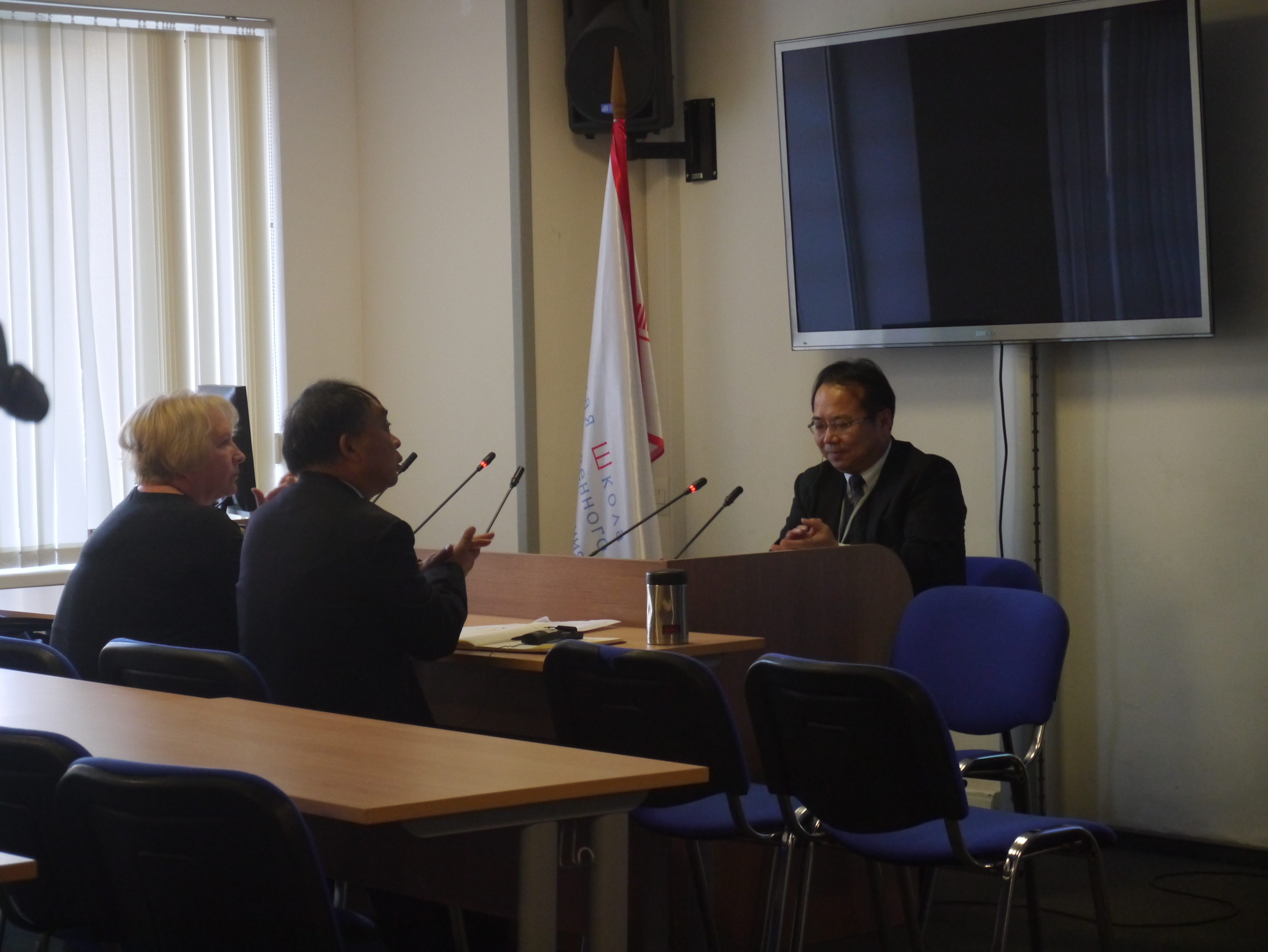 会议期间,韩喜平教授还作为特邀嘉宾与中国社科院马克思主义研究院院长、书记邓纯东教授等3人接受了俄罗斯宏观意识科学院电视台的采访,就文化多样性与文化保护等问题发表了自己的看法,同时与俄罗斯学者进行了广泛而深入的交流。