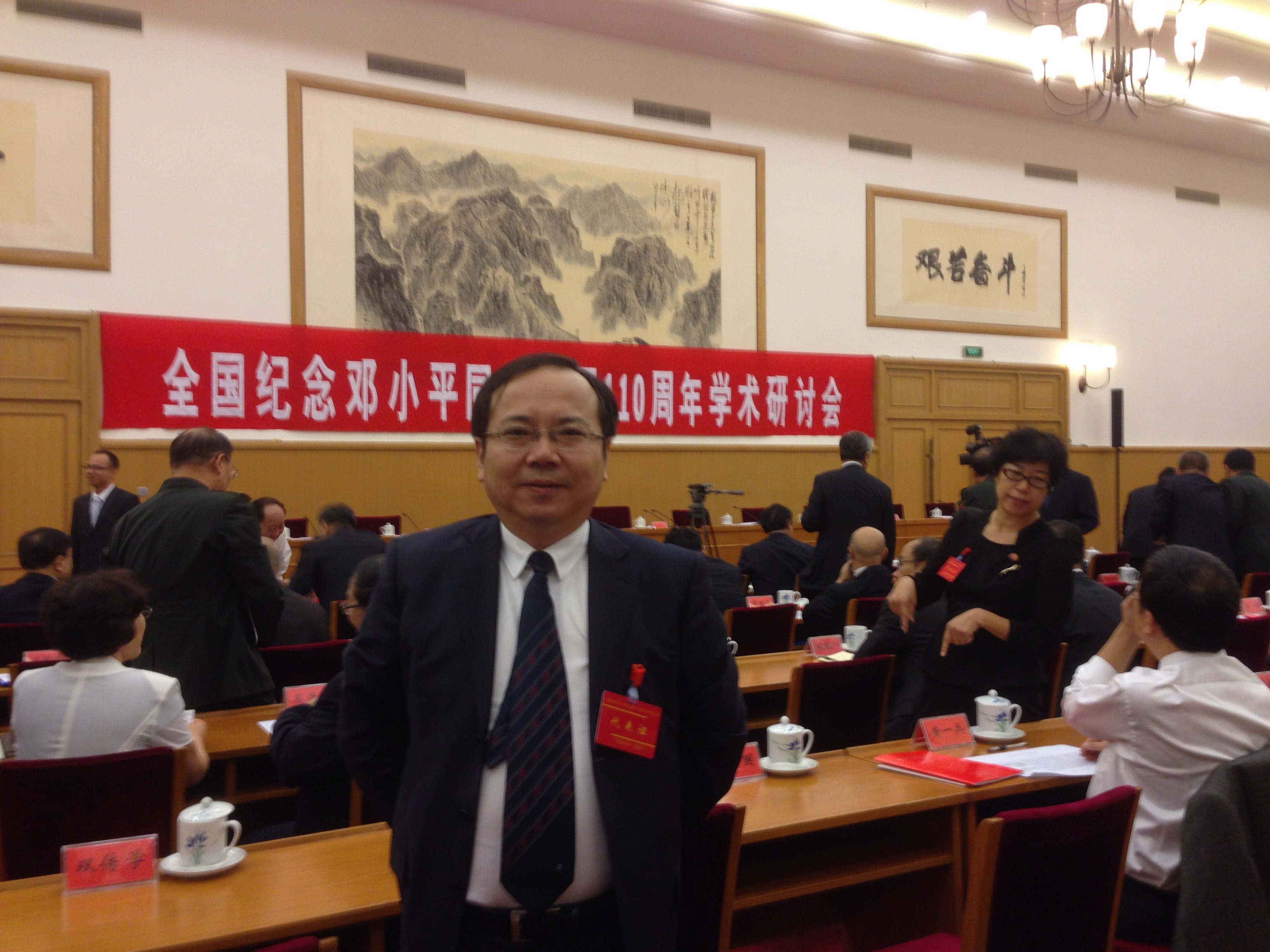 8月20日——22日全国纪念邓小平同志诞辰110周年学术研讨会在北京召开。中共中央政治局常委、中央书记处书记刘云山出席了会议并讲话,中共中央政治局委员、国务院副总理刘延东出席会议,中共中央政治局委员、中宣部部长刘奇葆主持了开幕式。这次研讨会由中央宣传部、中央党校、中央文献研究室、中央党史研究室、教育部、中国社会科学院、解放军总政治部联合举办。会议入选论文100余篇,集中反映了近年来邓小平生平和邓小平理论研究成果。来自全国各地150多位专家学者在会上进行学术交流,韩喜平教授作为教育部推选的代表参加了全国纪念邓小平同志诞辰110周年学术研讨会,在学术研讨会小组会上作了交流发言,并提交了《邓小平增进民生福祉战略研究》的学术论文。