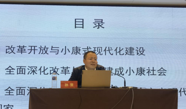 社会科学研究院副院长孙贺教授作《全面建设社会主义现代化国家》的专题讲座。孙贺教授挖掘马克思主义经典著作中有关“现代化”的知识,结合党史,以改革开放的点位看现代化建设。孙贺教授首先介绍了改革开放的历史演进,阐明了党关于改革开放的认识,并强调,改革开放是决定当代中国命运的关键一招,改革开放必须一以贯之。在谈论中国式现代化道路中,孙贺教授强调,西方的现代化道路与中国的现代化道路是不同的,二者根本不在一个赛道:西方是资本主义,其现代化是物的现代化,是商品的庞大堆积;我们的现代化的人的现代化,生产以满足人民需要为目的。在谈论全面深化改革与全面建成小康社会中,孙贺教授重点阐述了党的十八大以来,全面深化改革的成就和全面深化改革何以可能的原因,并谈到了党的十八届三中全会的划时代意义。最后,孙贺教授诠释了全面建设社会主义现代化国家的战略导向的三个“新”的具体意义、相互关系和现代化的“阿喀琉斯之踵”,表示要加强核心技术攻关,不断创新引领发展。