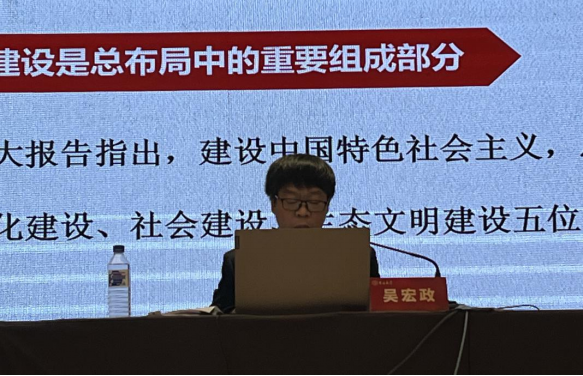 院长吴宏政教授作《文化建设与生态文明建设》的专题讲座。吴宏政院长首先从“什么是文化、什么是文化建设”谈论了文化建设在“五位一体”总体布局中的重要地位,再从人民、国家、民族多维度论述了为什么需要文化建设,并引用习总书记“民族复兴进入不可逆转的时代”金句来强调进一步提升国家文化软实力,是文化建设的目标之一。在本专题,吴宏政院长重点向学员讲述习近平生态文明建设思想的体系构成,并从社会主要矛盾、建设现代化国家、中华民族永续发展三个维度谈论生态文明建设的意义。吴宏政院长表示,生态文明建设不可避免四个基本问题:如何驾驭“资本逻辑”;如何摆脱“生态殖民主义”;如何处理经济发展和生态保护的矛盾;如何克服工业文明和生态文明的矛盾。在此基础上,吴宏政院长从五个方面讲述如何建设生态文明建设,如建设人与自然和谐共生的现代化,加强生态文明建设的国际合作等。