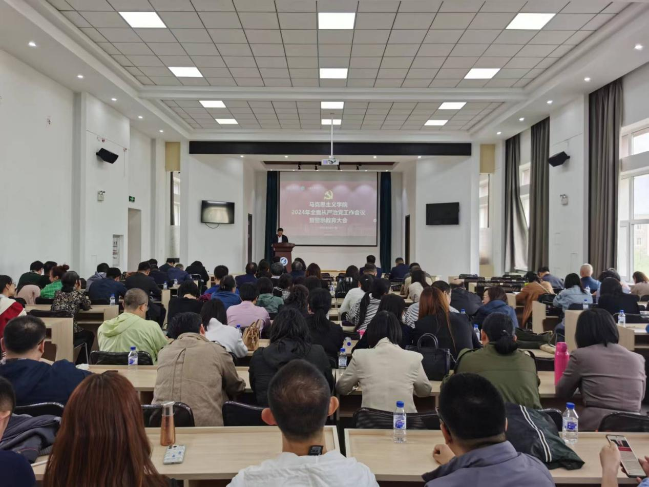 在南湖校区图书馆四楼报告厅召开全面从严治党工作会议暨警示教育大会,学院全体教职工参加会议。会议由党委书记钟新同志主持。