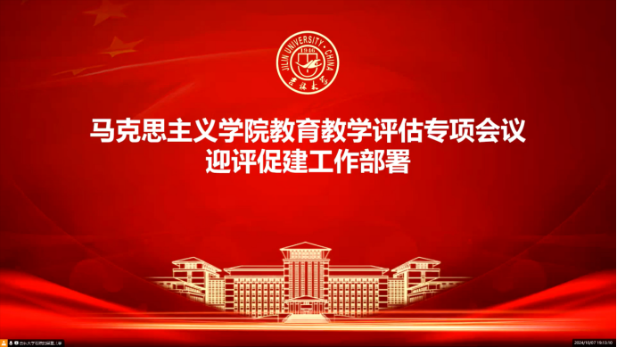 10月7日晚的会议在线上举行,会议由学院党委书记钟新主持,学院全体教职员工参加会议。本次会议中,石瑛副院长针对本科教育教学注意事项进行专题工作部署。石瑛副院长全面介绍了学校本次评估的类型、宗旨、时间、阶段等,以及学院思政课教师队伍建设、思政课建设亮点与特色情况,同时对专家线上、线下考查时的相关重点工作予以具体部署,为保障本科教育教学评估顺利完成做好充分准备。