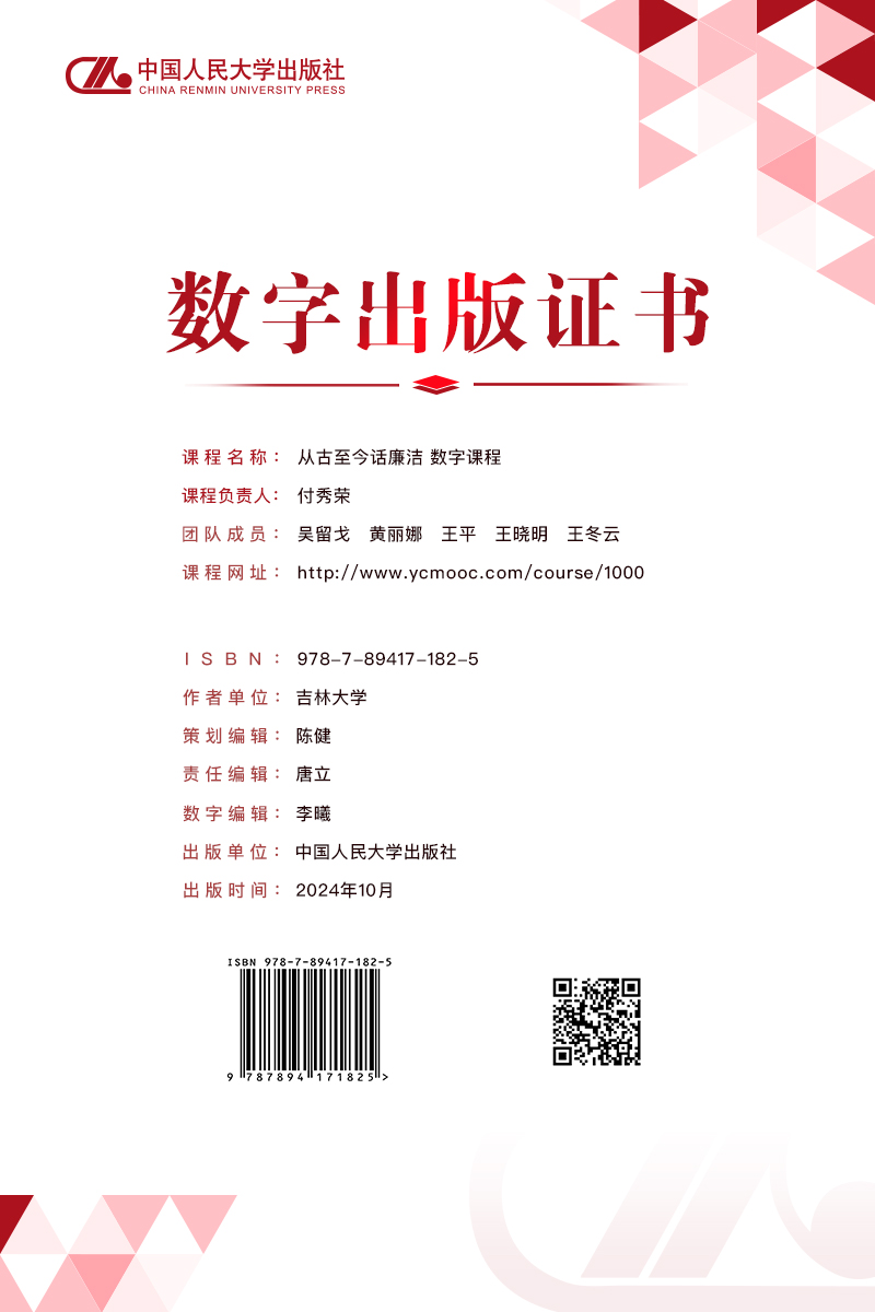 一门数字课程——《从古至今话廉洁》,由中国人民大学出版社正式出版上线,实现了麻豆视频