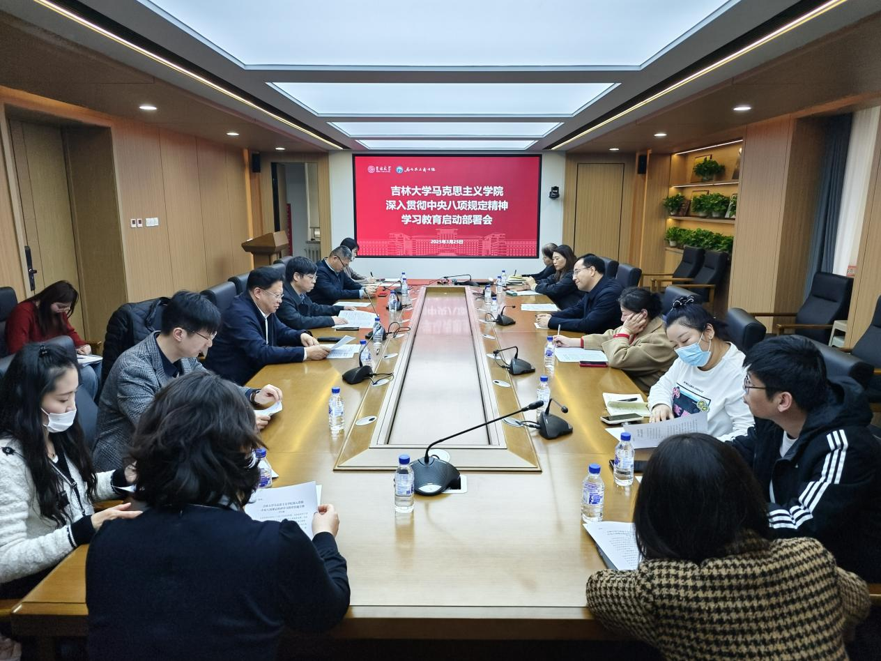 于2025年3月25日在吕振羽楼317会议室召开深入贯彻中央八项规定精神学习教育启动部署会。学院领导班子成员、党委委员、支部书记、行政人员代表参加会议。会议由院长吴宏政主持。
