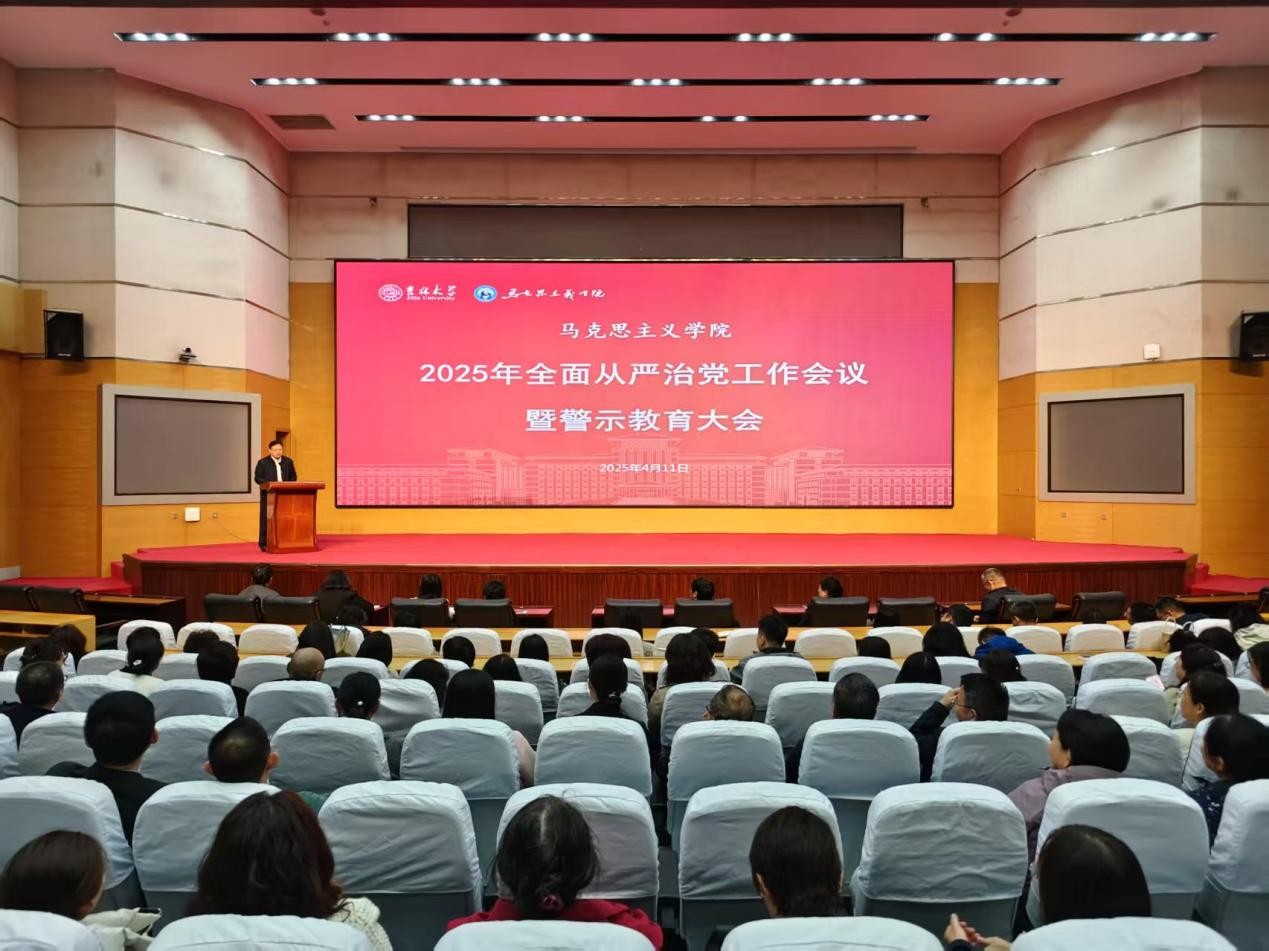 在中心校区东荣报告厅召开全面从严治党工作会议暨警示教育大会。会议由学院党委书记钟新主持,学院全体教职工参加会议。