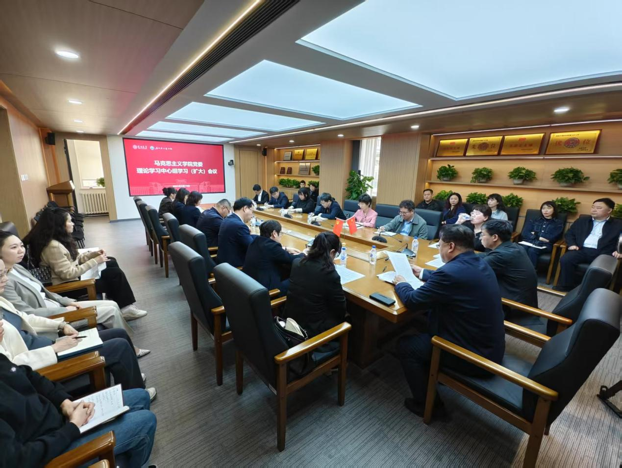 在吕振羽楼会议室召开党委理论学习中心组学习(扩大)会议,专题学习《党的十八大以来深入贯彻中央八项规定精神的成效和经验》和《八项规定改变中国》。学院党委理论学习中心组成员、教工党支部书记、教研室主任、行政人员参加会议。会议由学院党委书记钟新主持。