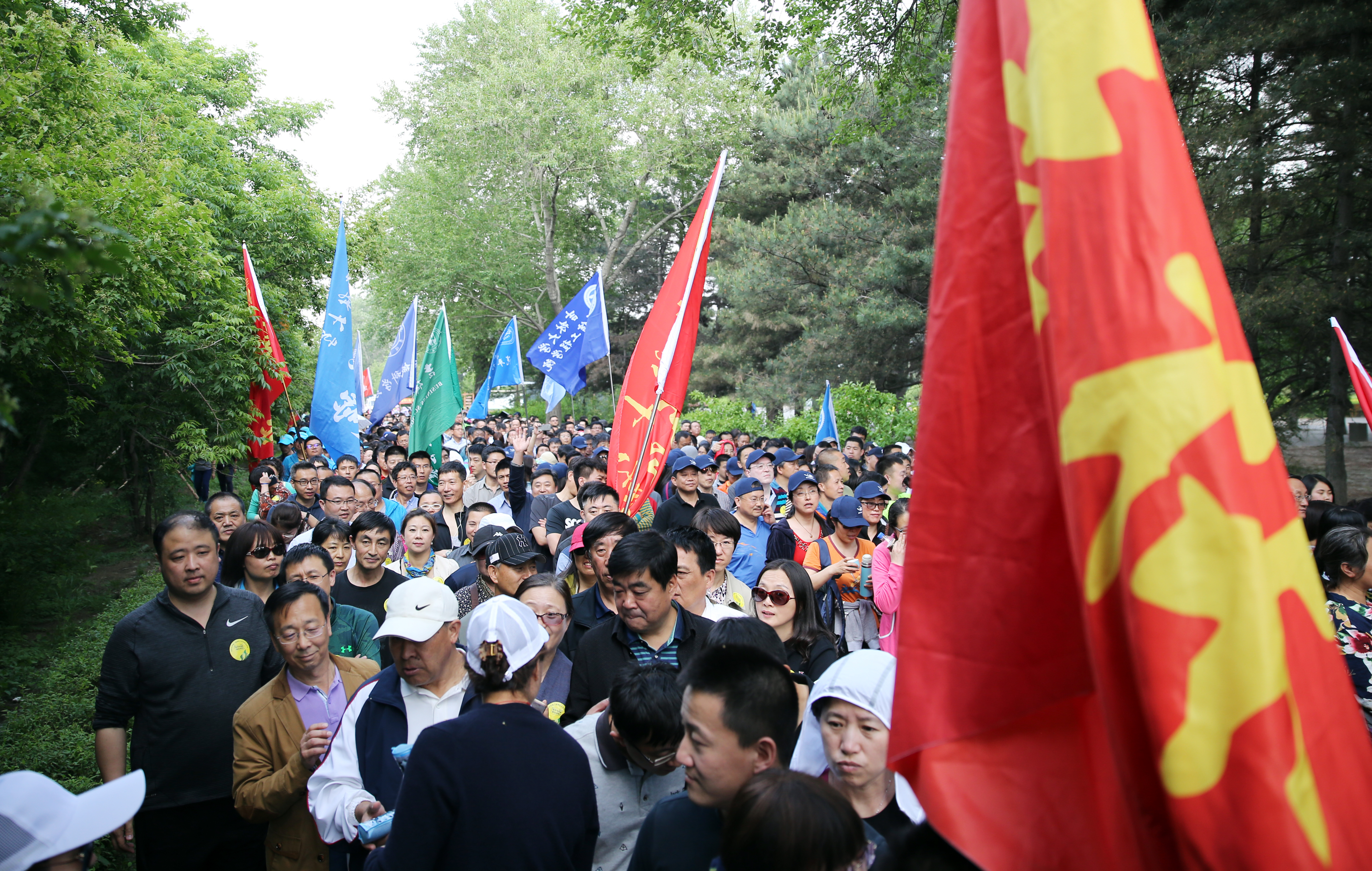 徒步线路起于南湖公园4号门,经园区湖西路环路、工学院、黄金设计院、南湖新村、湖西桥游乐区、平桥等处再回到起点,全程近6公里历时约50分钟。来自学校50余个基层工会共计近6000名教职工一路走过鸟语花香,岸柳垂青,一起分享着美丽的北国初夏风光,体会着运动的激情与乐趣,感受着相互交流与“活力吉大、幸福吉大”的喜悦。