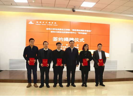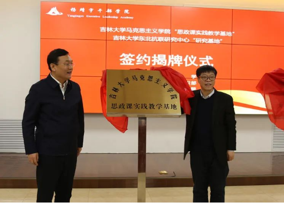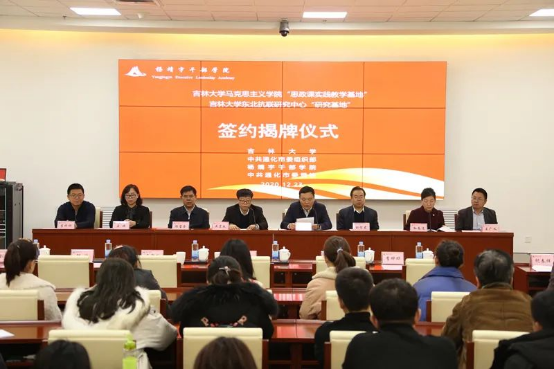 院长吴宏政教授、东北抗联研究中心主任刘信君教授分别与通化市委党校常务副校长陈宝金签署了《共建思政课实践教学基地合作协议书》、《共建东北抗联研究基地合作协议书》,并举行了签约揭牌仪式。通化市委常委、组织部长邵波、通化市委党校副校长李朋达等参加了签约揭牌仪式。签约揭牌仪式由通化市委党校副校长孙春波主持。