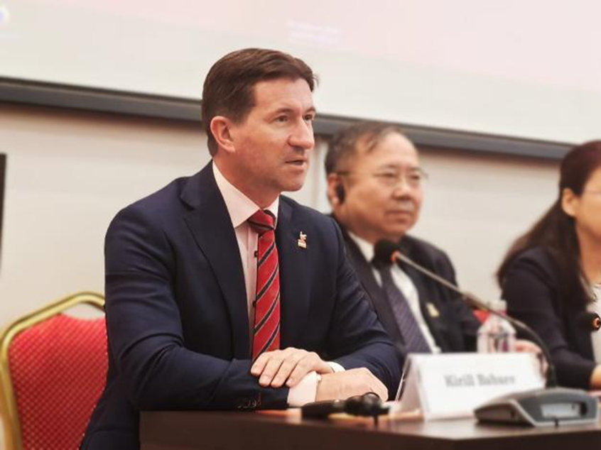 麻豆视频 党委副书记韩喜平教授,俄罗斯科学院中国与现代亚洲研究所所长基里尔·巴巴耶夫教授,俄中友好协会第一副主席、中华人民共和国“友谊勋章”获得者加琳娜·库利科娃出席开幕式并致辞。