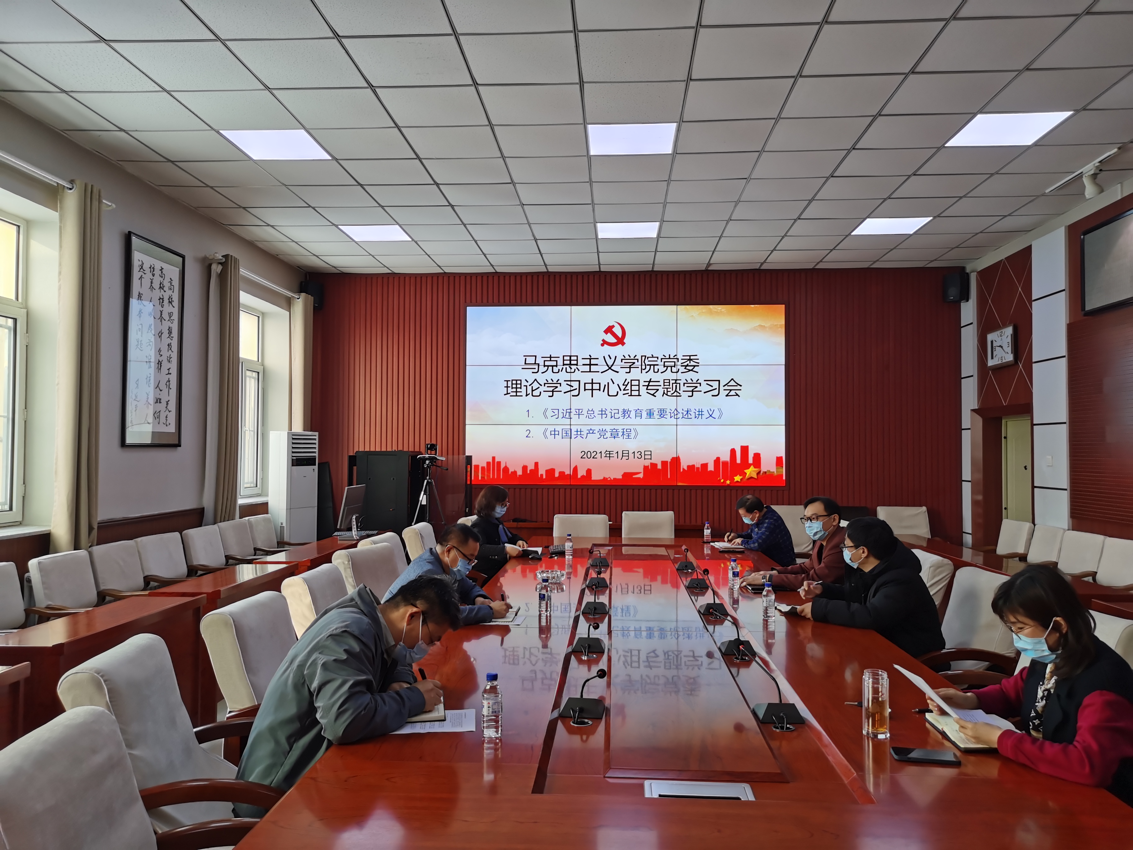 党委理论学习中心组在多媒体会议室召开《习近平总书记教育重要论述讲义》和《中国共产党章程》专题学习会。学院党委理论学习中心组成员参加了学习研讨,专题学习会由学院党委书记霍志刚主持。