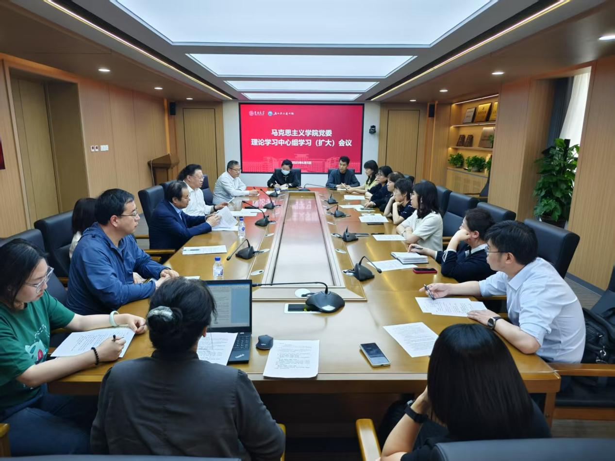 在吕振羽楼320会议室召开党委理论学习中心组学习(扩大)会议,专题学习中央八项规定及其实施细则等法规文件中关于禁止违规吃喝的规定要求。会议由学院党委书记钟新主持,学院党委理论学习中心组成员、行政人员参加会议。