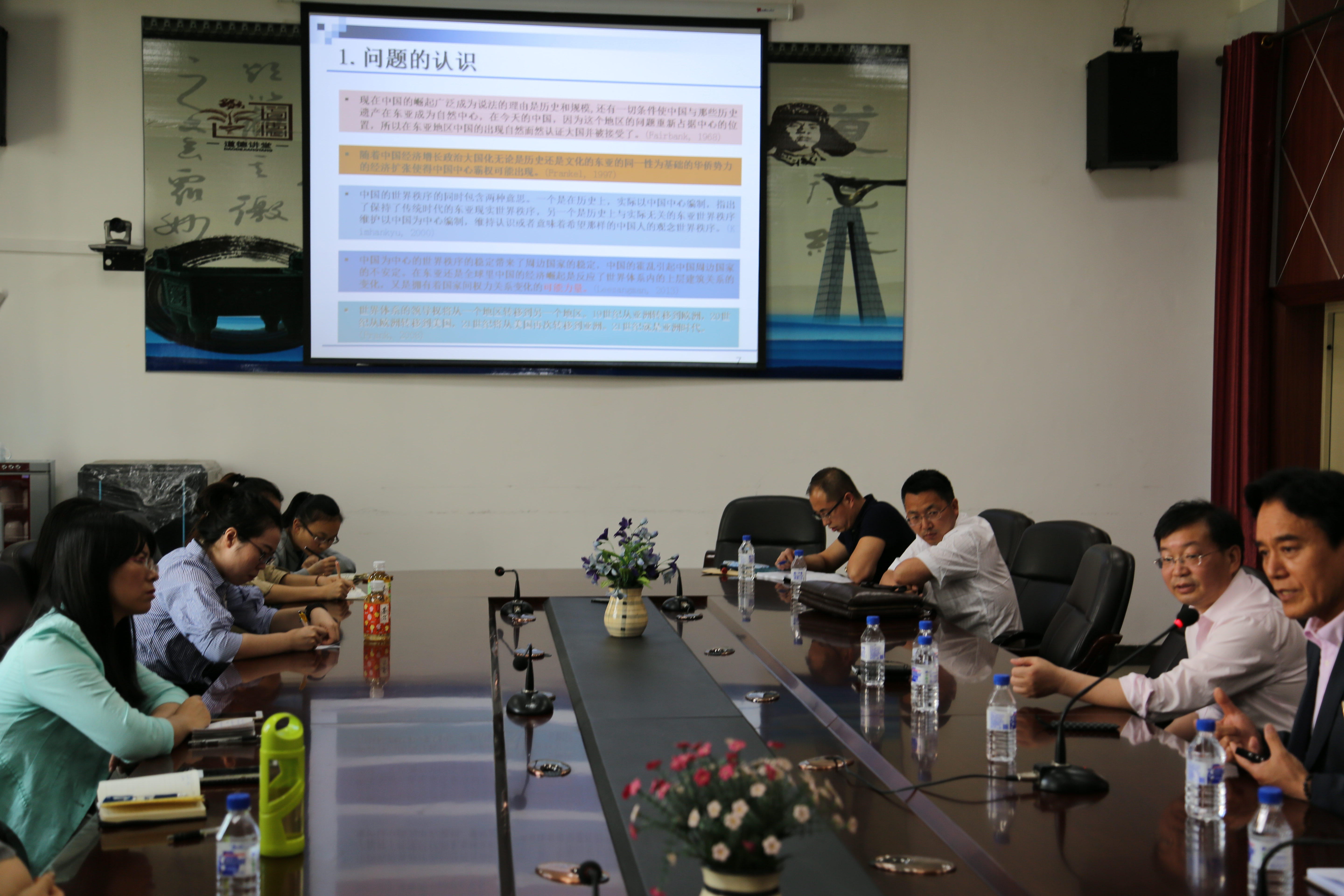 李相万教授讲座的题目为“外国学者眼中的‘一带一路’政策及其影响:基于世界体系论的视角解释新型大国的责任。”李教授从生产力与生产关系、经济基础与上层建筑之间的关系作为切入点,从中国与世界体系的视角探讨了“一带一路”战略以及中国崛起。结合中国历史的发展,李教授认为随着经济的发展,中国崛起不可避免,如何实现制度、政策、资源和环境四者的协调,解决经济新常态背景下中国的政治经济转型问题,对中国“一带一路”战略的顺利推进和中华民族的伟大复兴有着重要的意义。与会师生就李教授所做的报告及相关问题进行了热烈的探讨和交流。