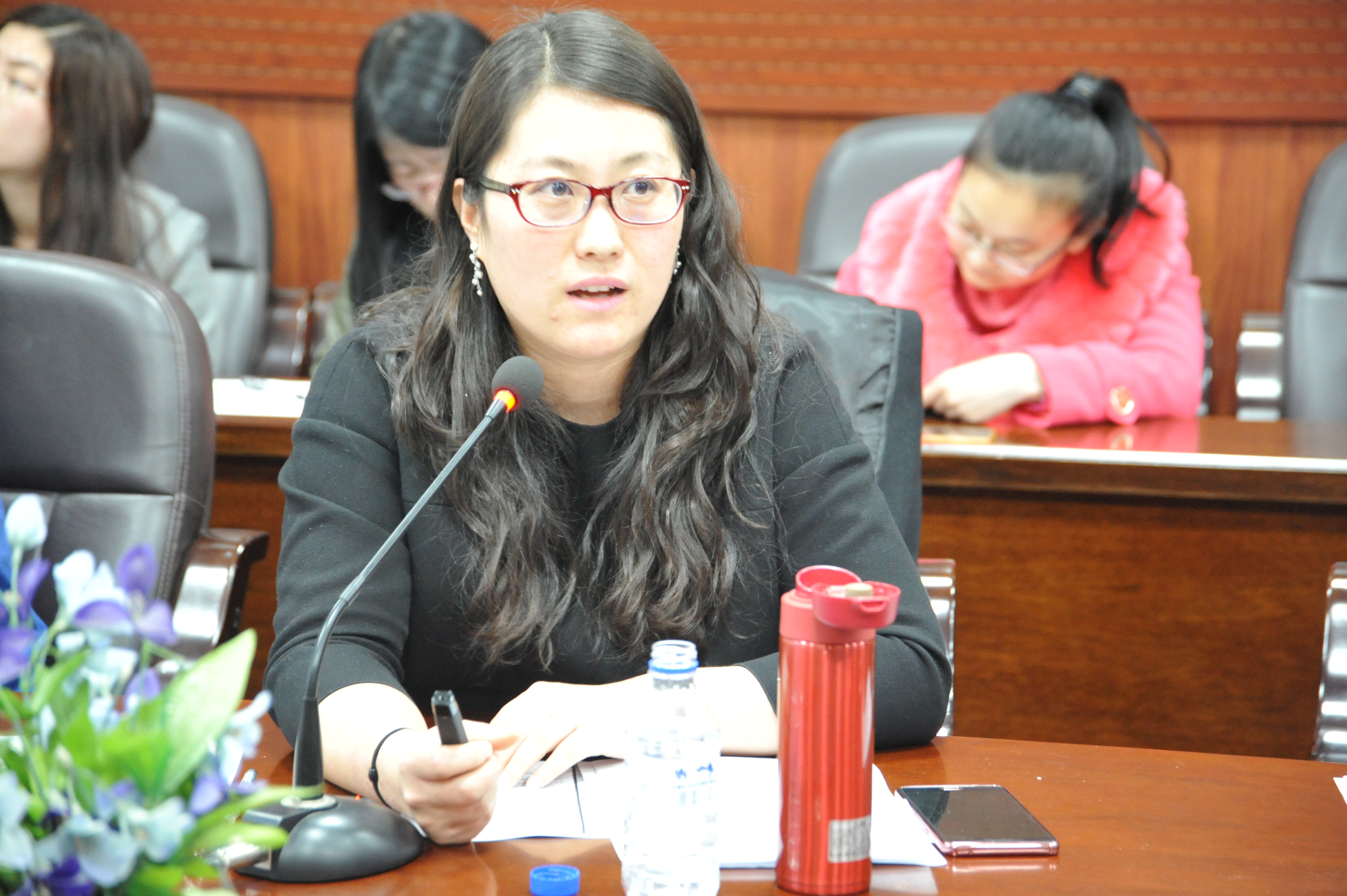 张艳梅教授以《美国高等教育管窥》为题讲述了她在美国范德堡大学访学的经历。从范德堡大学的概况到哲学系概况,从本科生教学到研究生专业具体情况,从硬件设施到“软件”情况,从师资到学生,从课程设置到作业考试,张老师都作了详尽地介绍。石瑛教授在韩国梨花女子大学访学,她结合中国发展的实践,以熟悉与重新认识:韩中互鉴的视野、民族与世界:韩国德育的两个比较和提升与超越:我的几点感悟等为视角,详细对比了中韩两国的德育状况。她认为,随着中国经济社会的发展,要逐步提升个人自身素质、坚持“四个自信”,以提升中国的文化软实力。刘姝副教授在美国Vanderbilt University访学一年。刘老师从“感受美国的简单”切入点,以丰富的图片内容就小学教育、高等教育向大家做了介绍,她结合自己的访学经历,分别就国家意识、课程学习、社会实践以及推进社会创新的方式,与在座的师生进行了交流。