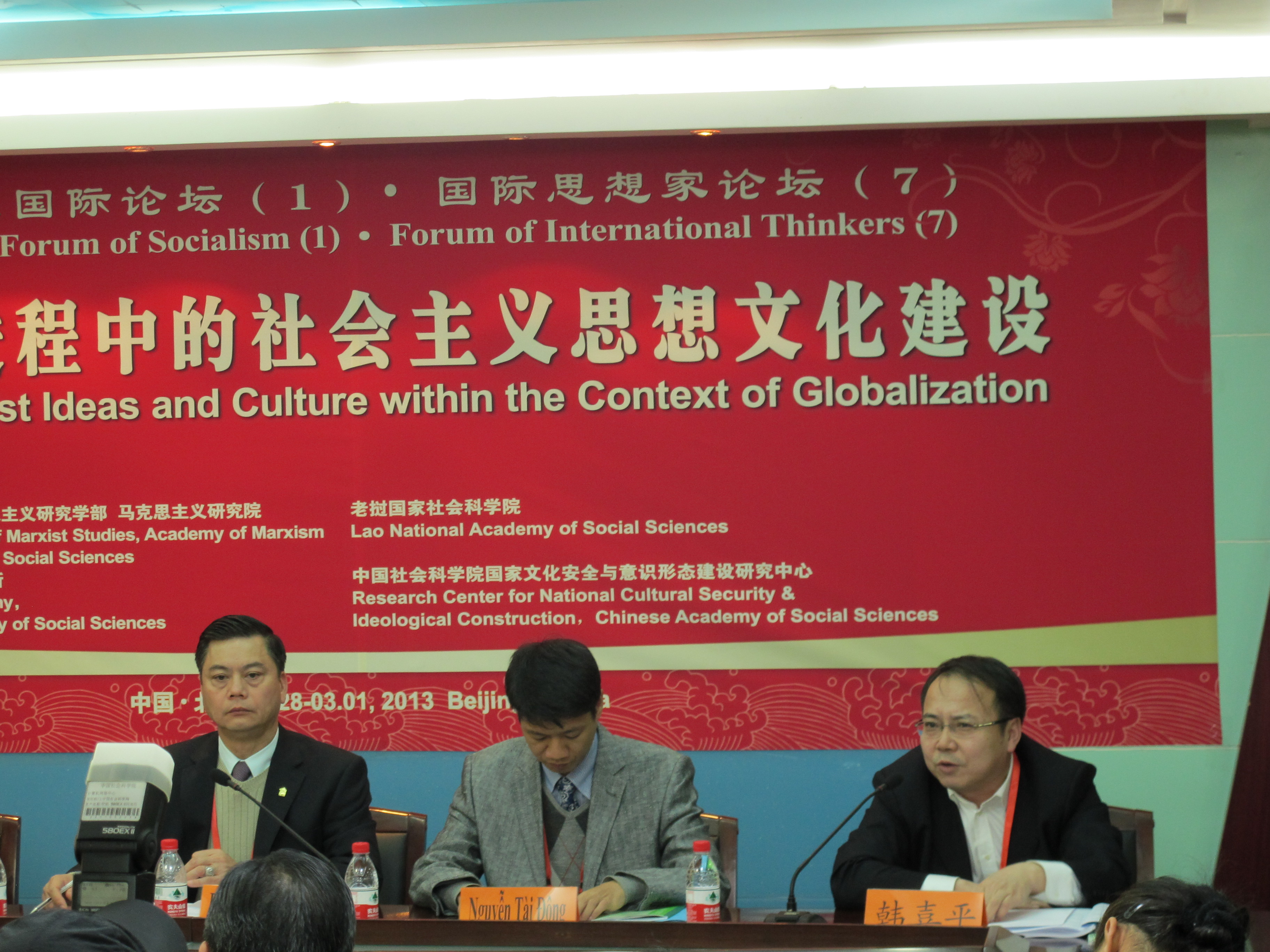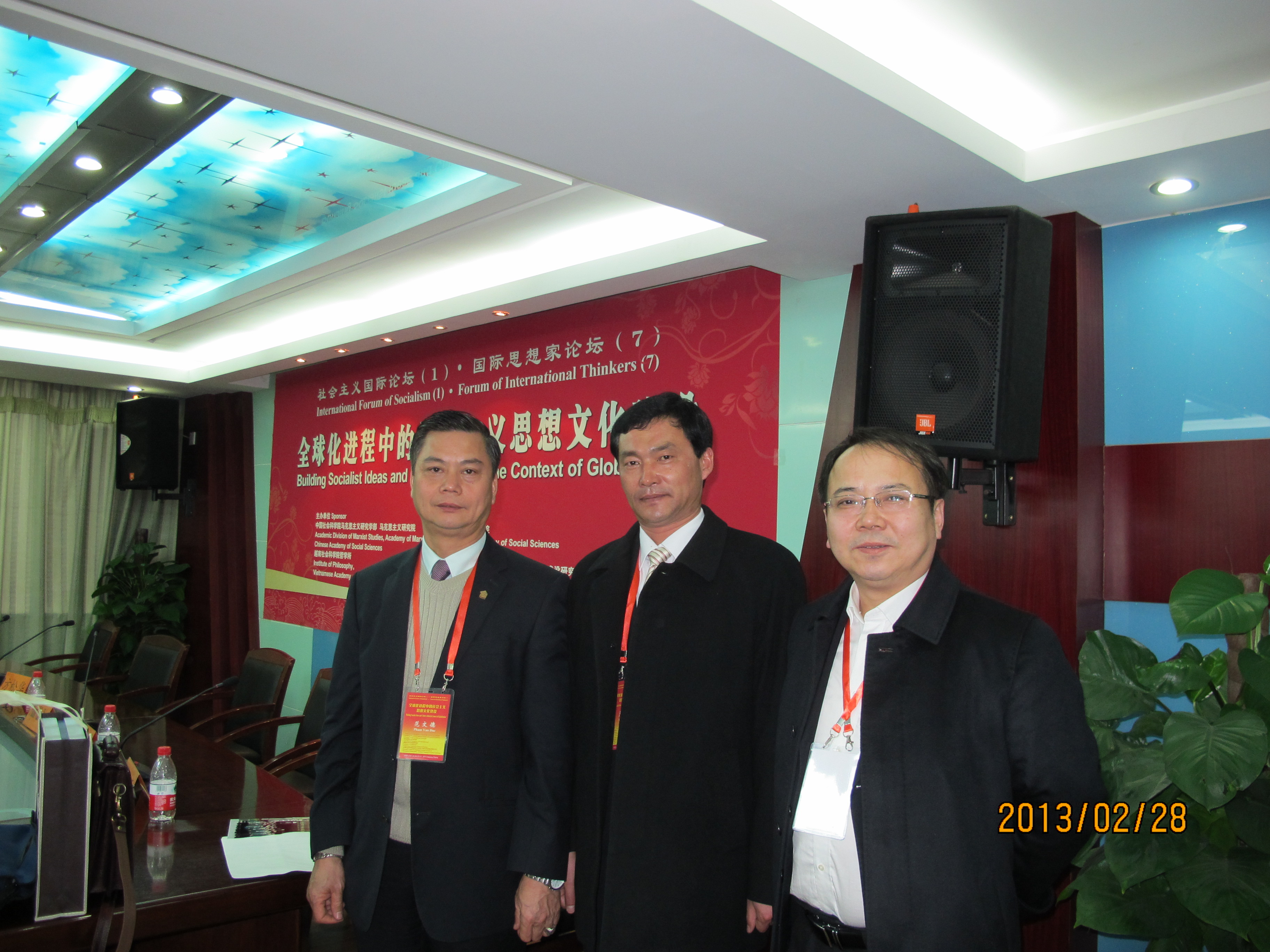 2013年2月28日至3月1日,第一届社会主义国际论坛暨第七届国际思想家论坛在中国社会科学院隆重举行,本次论坛由中国社会科学院马克思主义研究学部、马克思主义研究院、国家文化安全与意识形态研究中心以及越南社会科学院哲学所、老挝国家社会科学院共同主办,来自中国、越南、朝鲜、老挝、古巴的六十余位学者参加本次论坛,古巴驻华大使白诗德(Alberto J.Blanco Silva)到会讲话。本次论坛的主题是“全球化进程中的社会主义思想文化建设”,与会学者就全球化背景下的社会主义文化建设、文化安全、文化理论创新以及弘扬民族文化、文化交流等问题展开了广泛地探讨与交流。我校麻豆视频