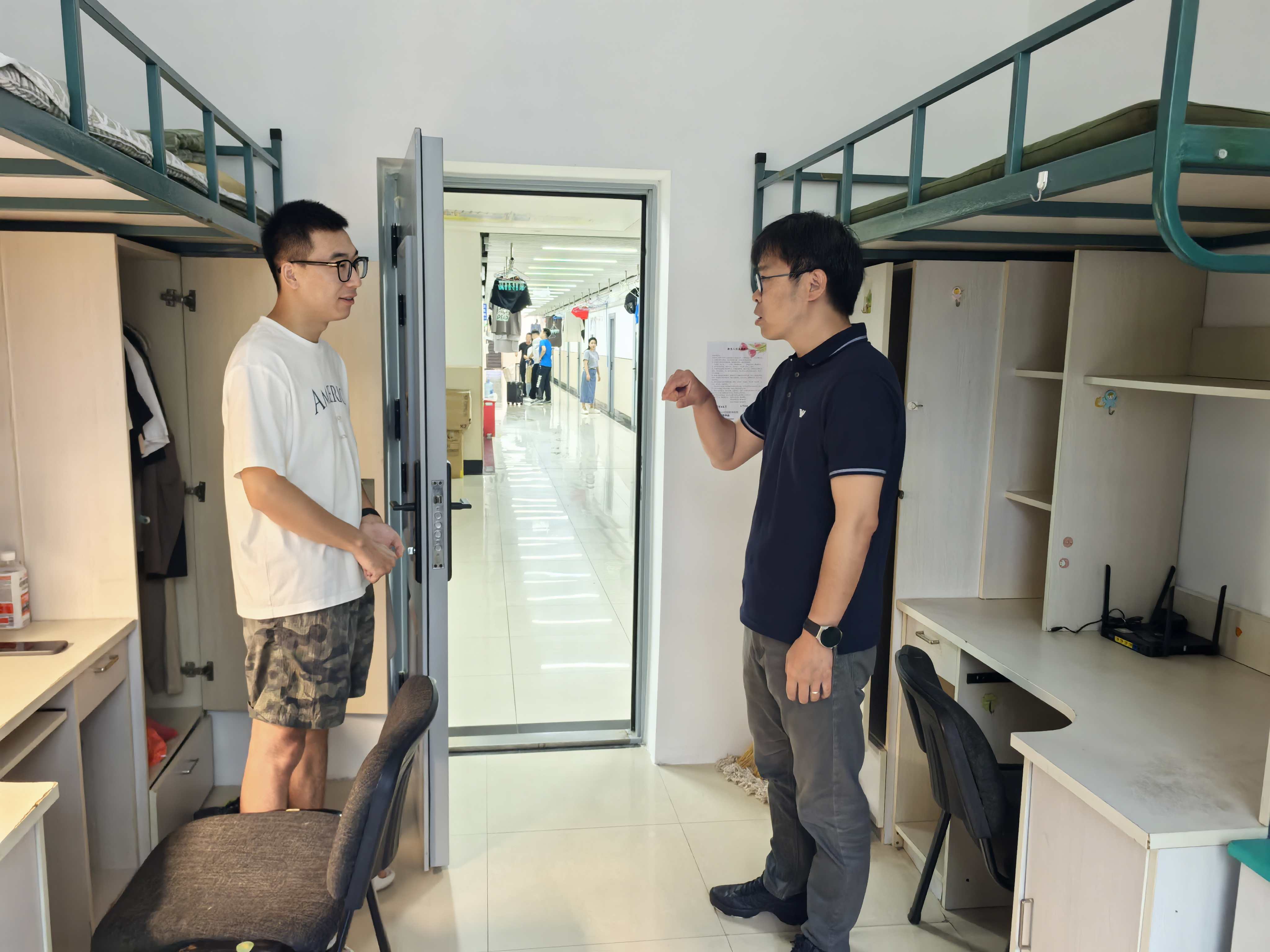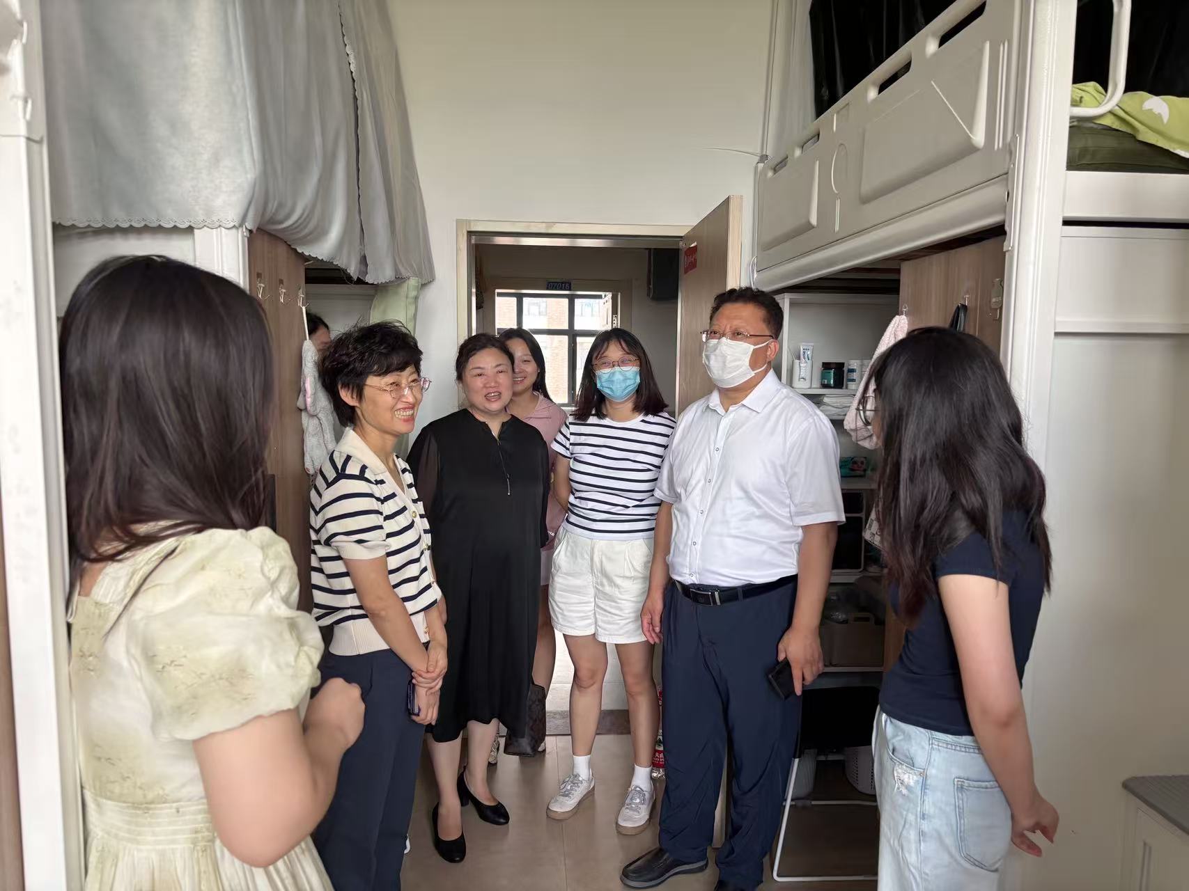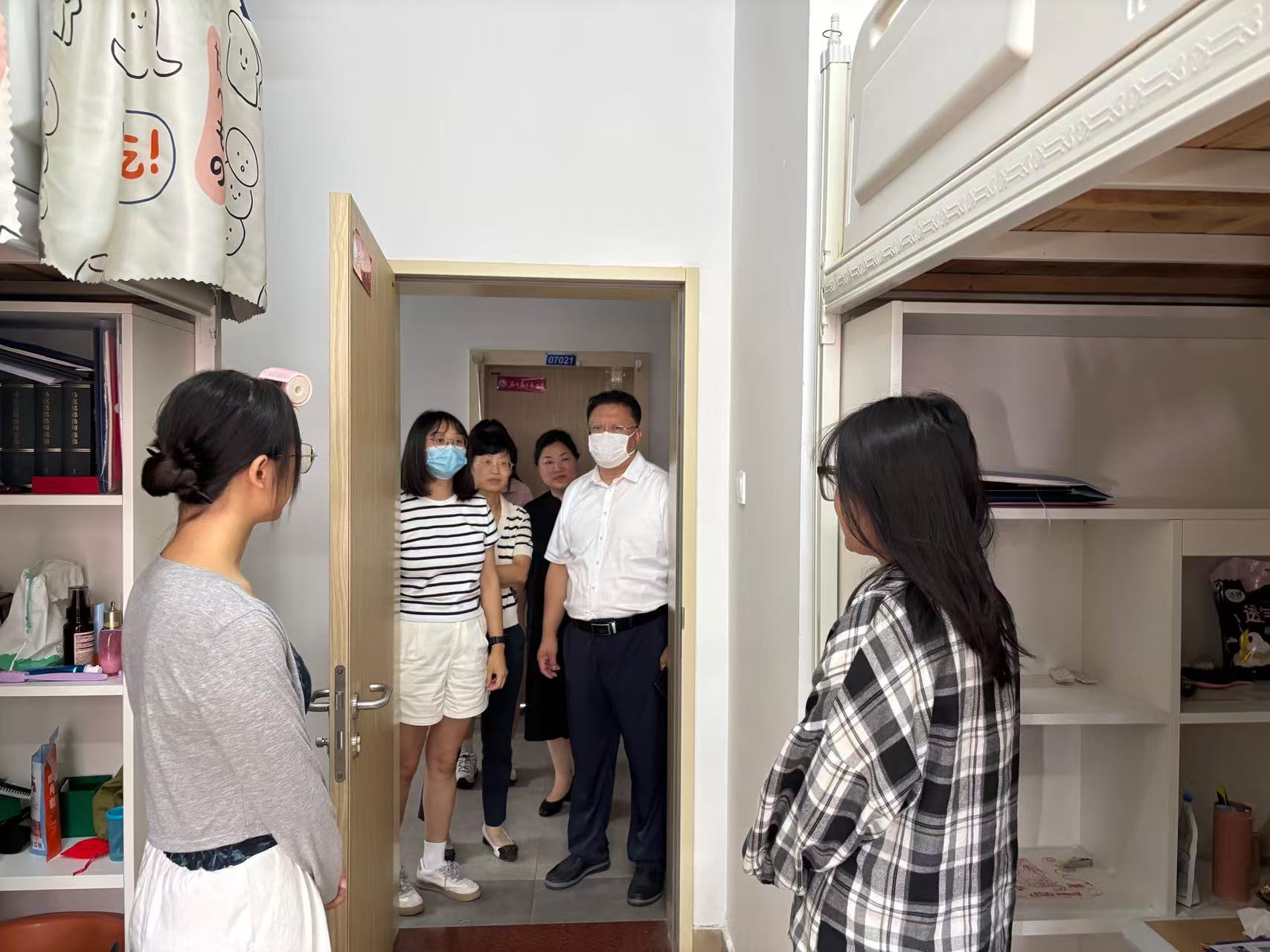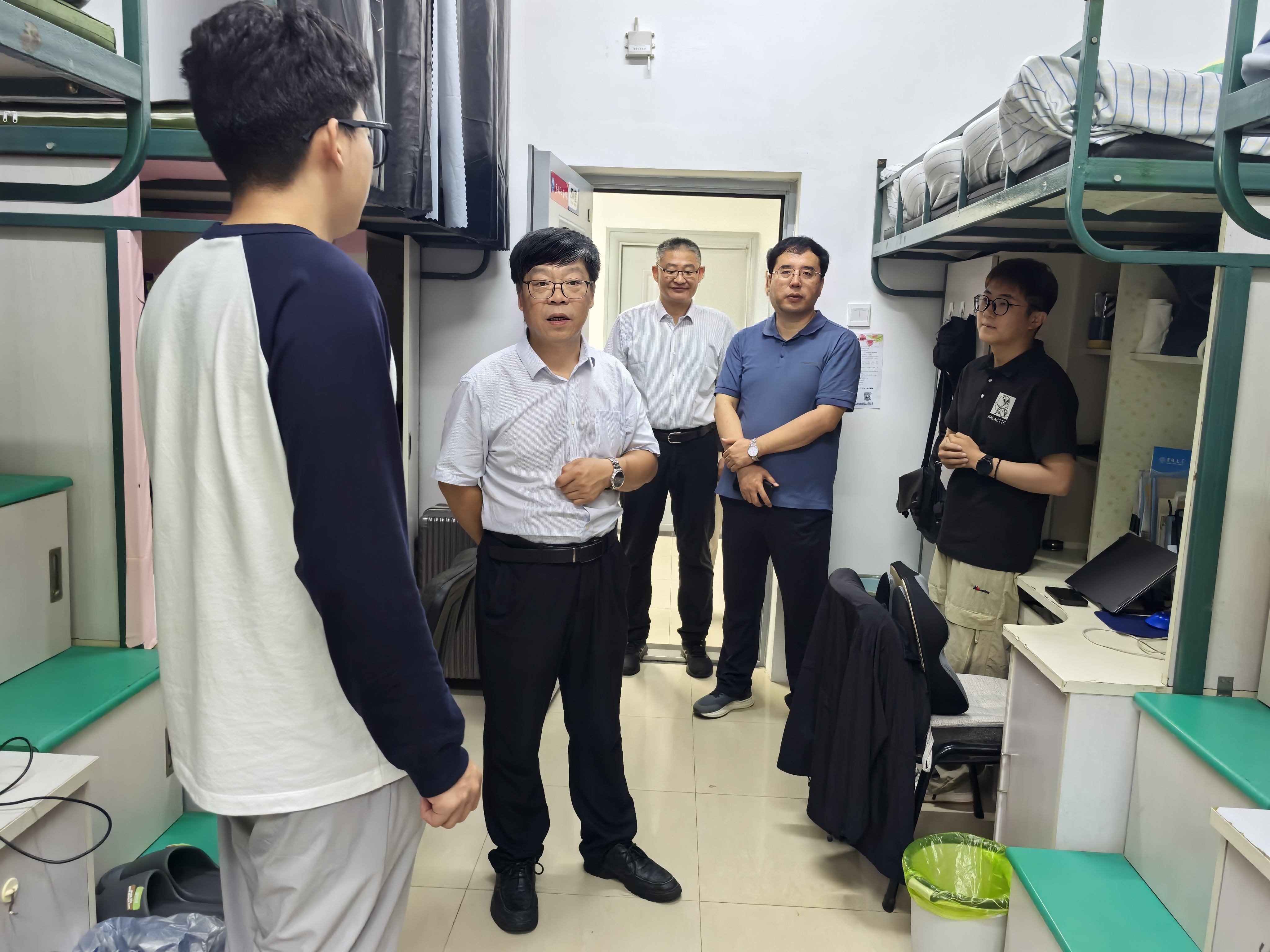 的领导老师们分为两组,分别走访了刚入学的2025级硕士新生女生及男生寝室,为莘莘学子送去温暖的问候与关怀。