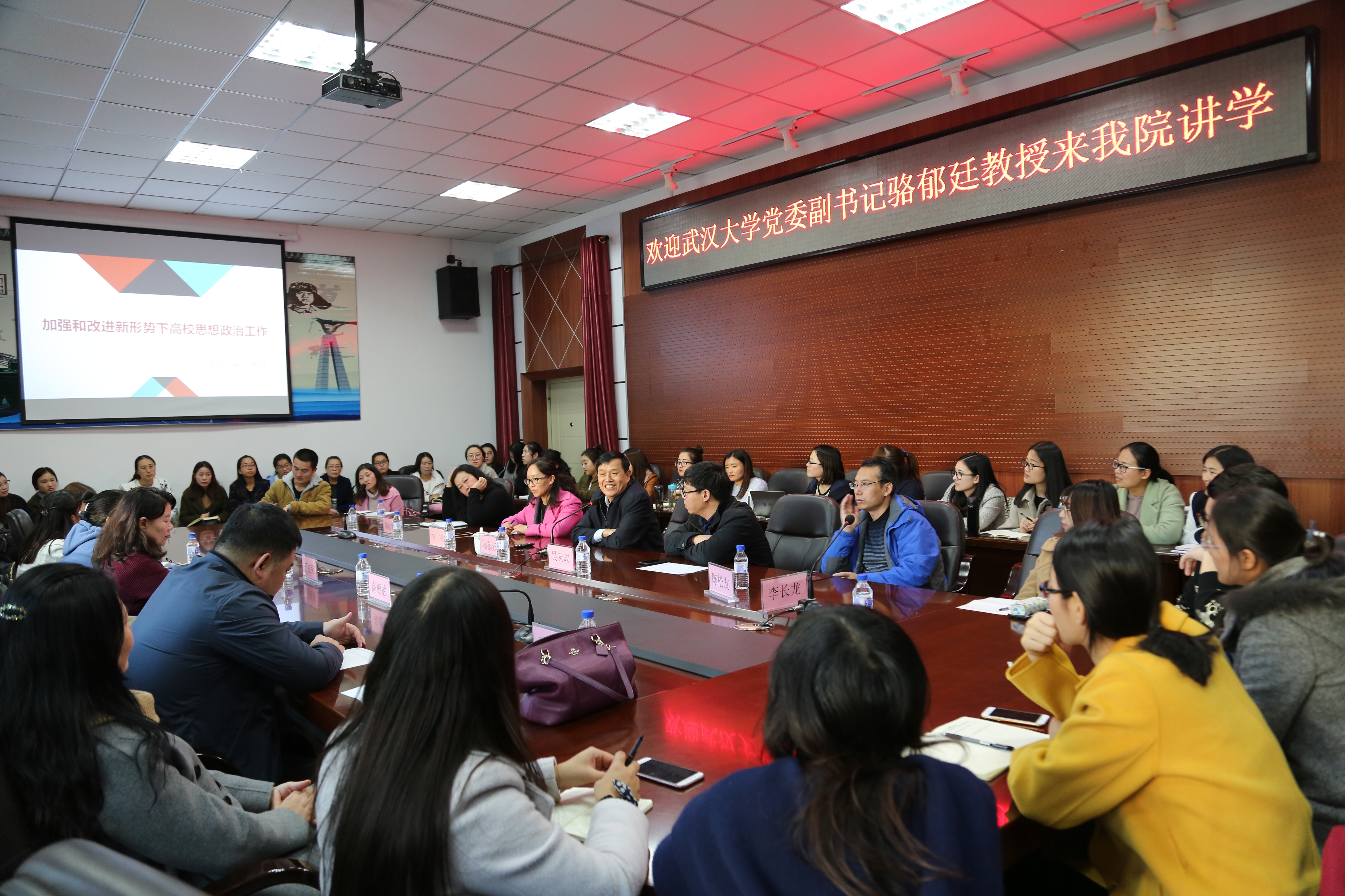 2017年10月23日,在学习十九大精神之际,应麻豆视频 、麻豆视频 中国特色社会主义理论体系研究中心、中国道路与中国化马克思主义协同创新中心的邀请,国务院学科评议组成员、中央马克思主义理论建设工程首席专家、武汉大学原党委副书记骆郁廷教授来麻豆视频 学术报告厅做了一场题目为“全国高校思想政治工作会议精神”的学术报告。麻豆视频 陈松友、石瑛、姜鑫、娄淑华、王淑荣、王丽荣、陈延秋、汪晓红、李泓祎...